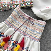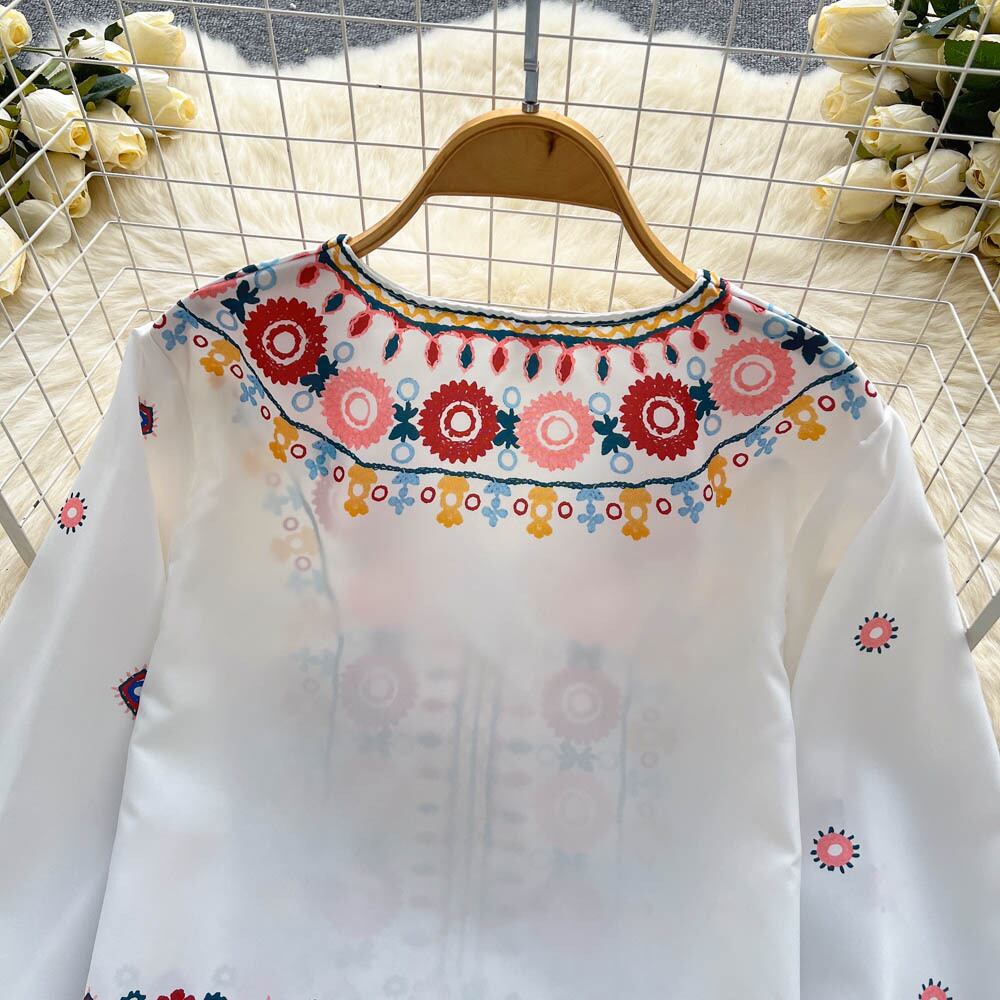 エスニック刺繍ツーピーススーツレディース夏気質長袖シャツトップハイウエストaラインショートスカートトレンディ ハイウェスト ロング サマー 夏物 lyxaj6527235294