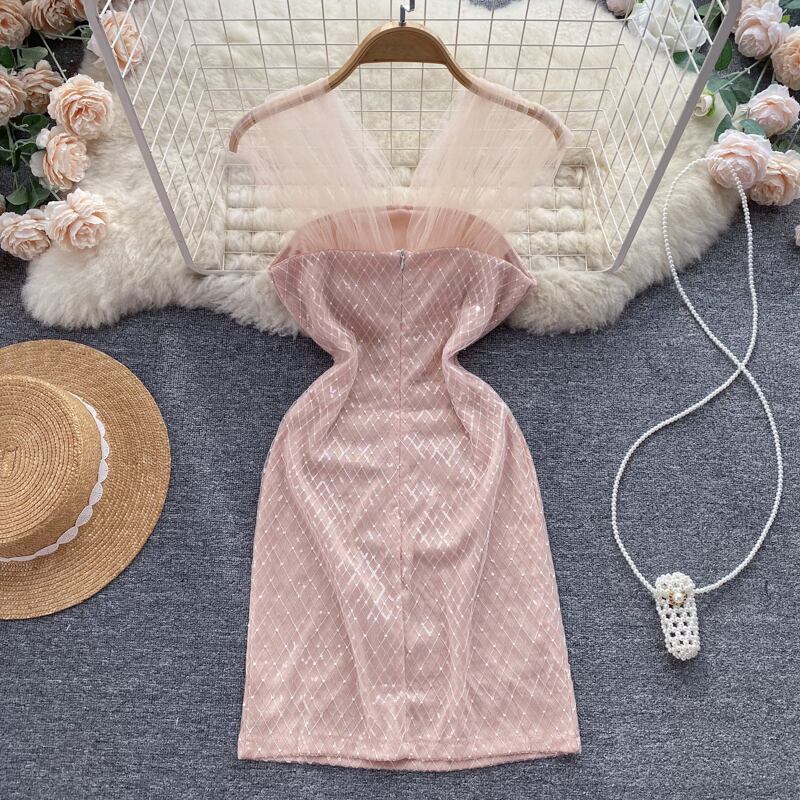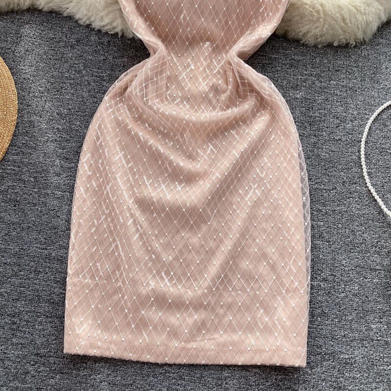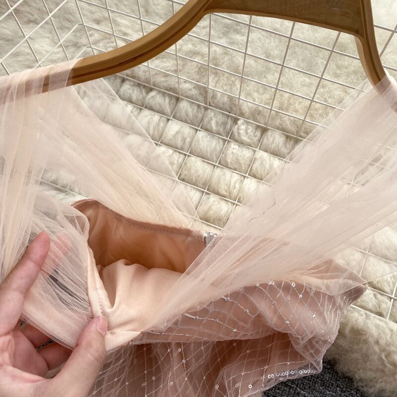 甘い初恋気質メッシュサスペンダードレス女性デザインセンスニッチスリムスリム気質ショートパッケージヒップスカート 大人ガーリー スウィート キュート カジュアル lyxaj34955262133