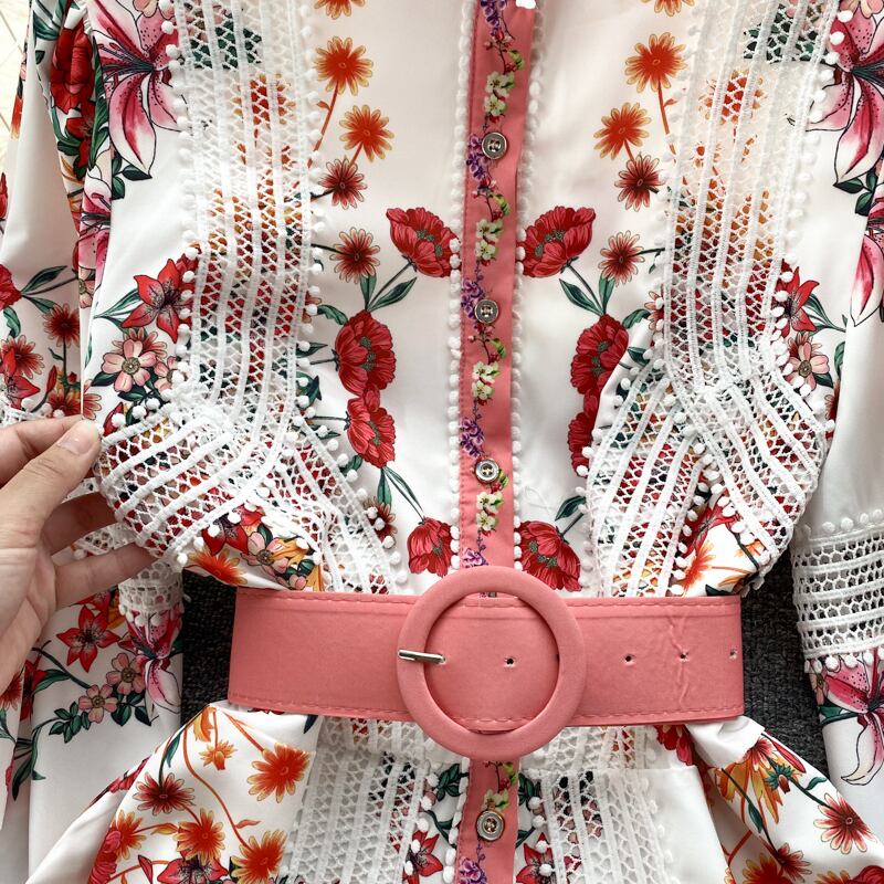 フランスのシックで美しいウエストと薄い気質の長袖ドレス夏の女性の小さな中空Aラインスカート ロング サマー 夏物 lyxaj34692711051