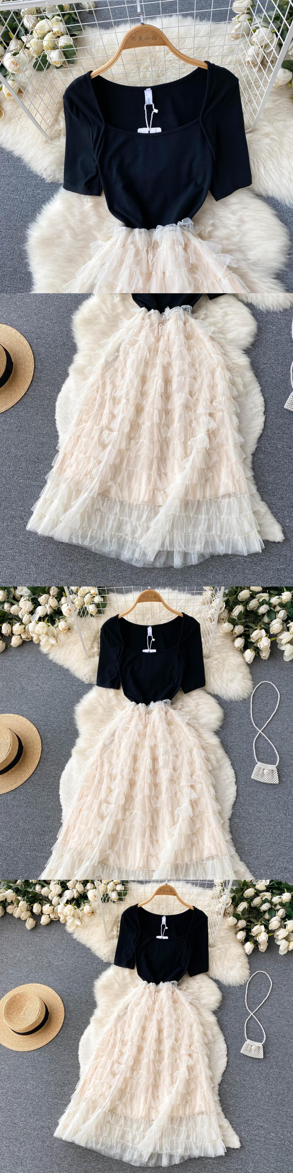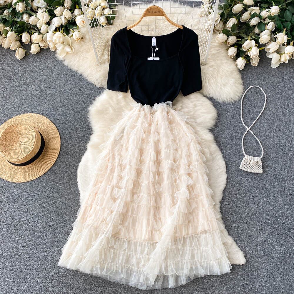 シックな風の妖精は甘くてスリム、フランスのセレブヘップバーン風のレトロロングフェイクツーピースケーキドレス 大人ガーリー スウィート キュート カジュアル lyxaj81301553302