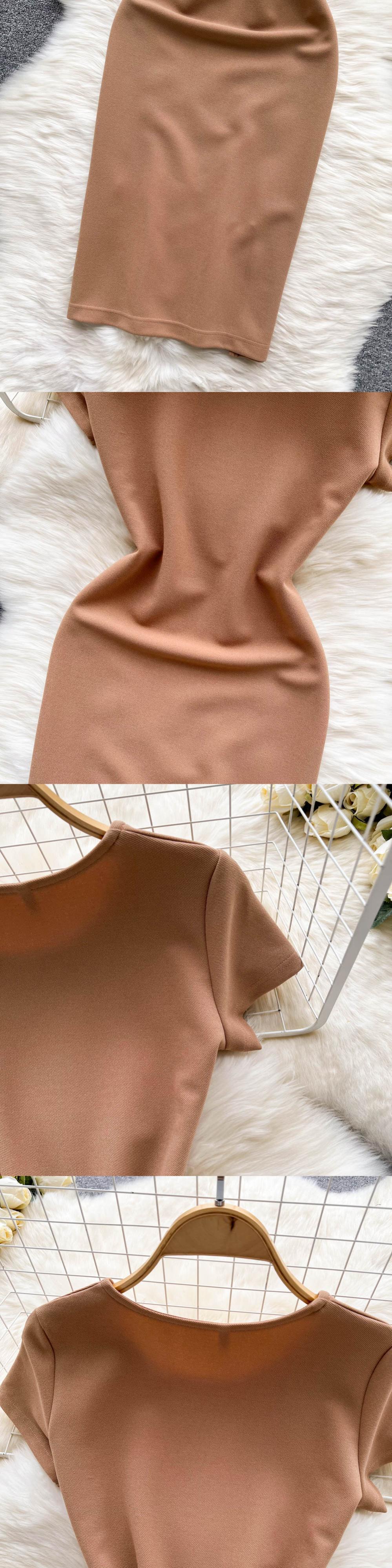 フランスの優しいラウンド ネック半袖ドレス 2022 夏の新しいスリム フィットとスリムな気質スプリット ヒップ スカート サマー 夏物 Oネック lyxaj70610209222