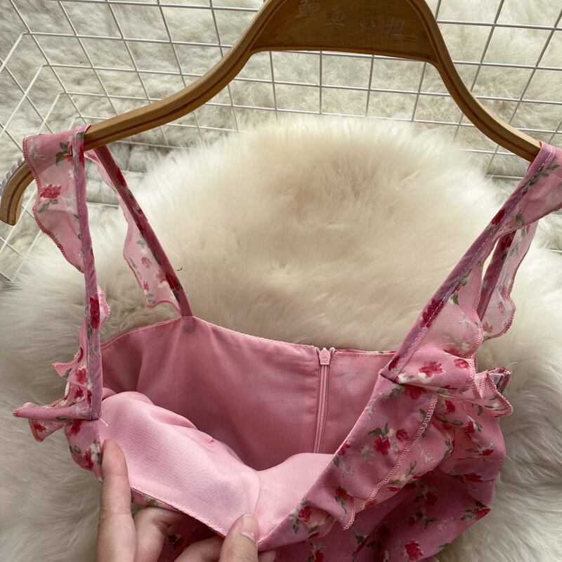 ビーチスカートの女性の海辺の休暇のスーパー妖精三亜旅行服ピンクの花柄のサスペンダードレスは、小さなデザイン感があります lyxaj16294093156