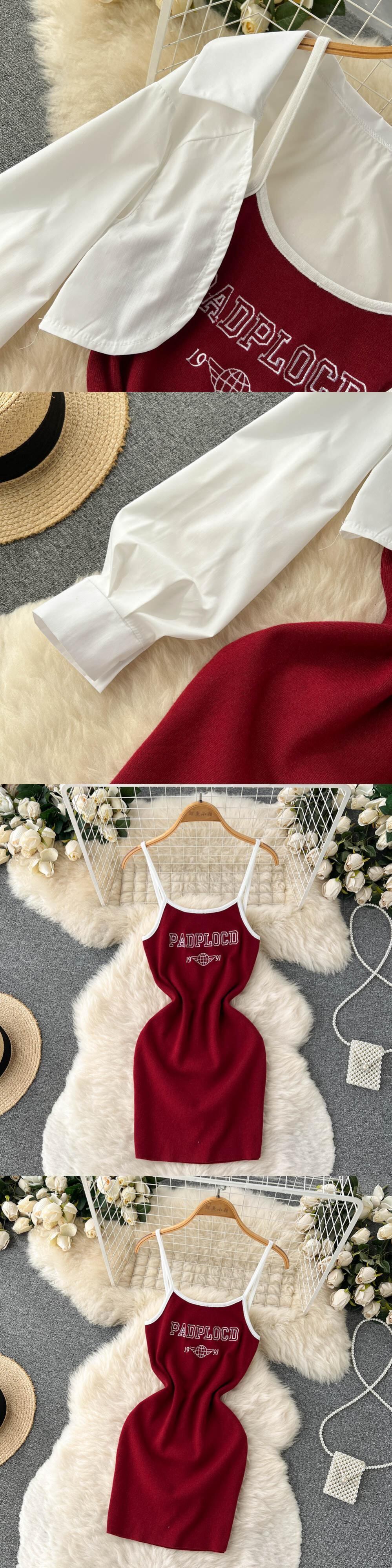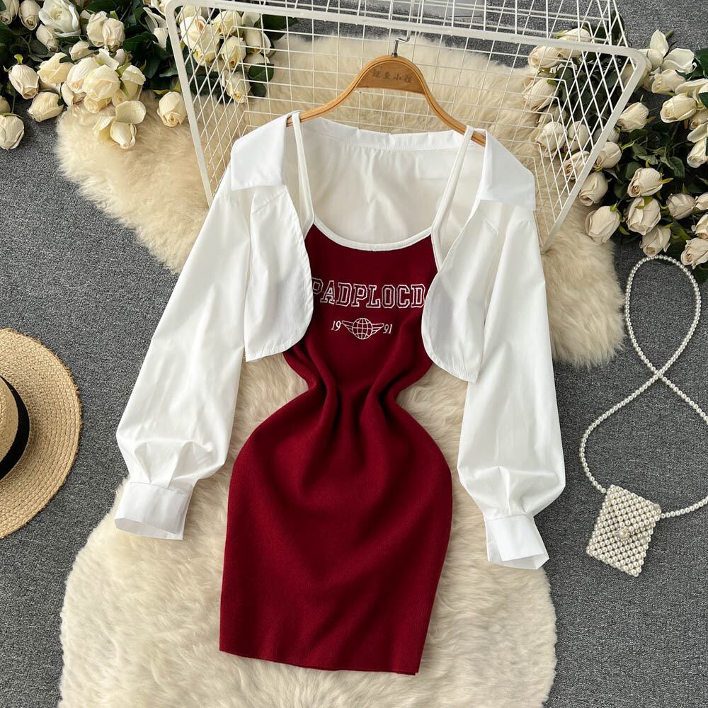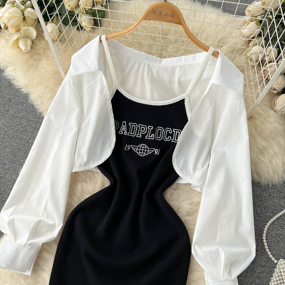 ネットレッド年齢を減らすツーピーススーツ女性の夏の長袖シャツトップホットガールプリントスリングバッグヒップワンピースショートスカート ロング サマー 夏物 lyxaj27883236267