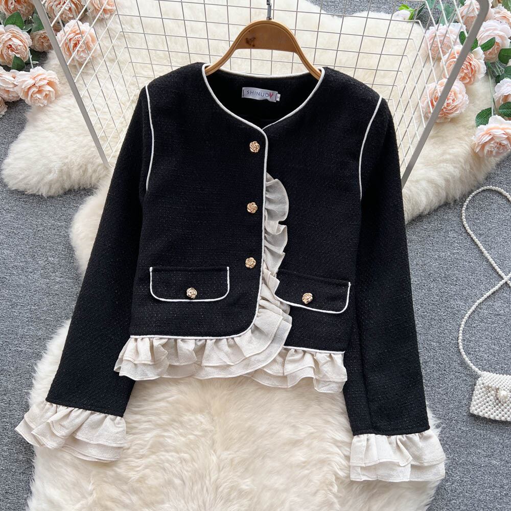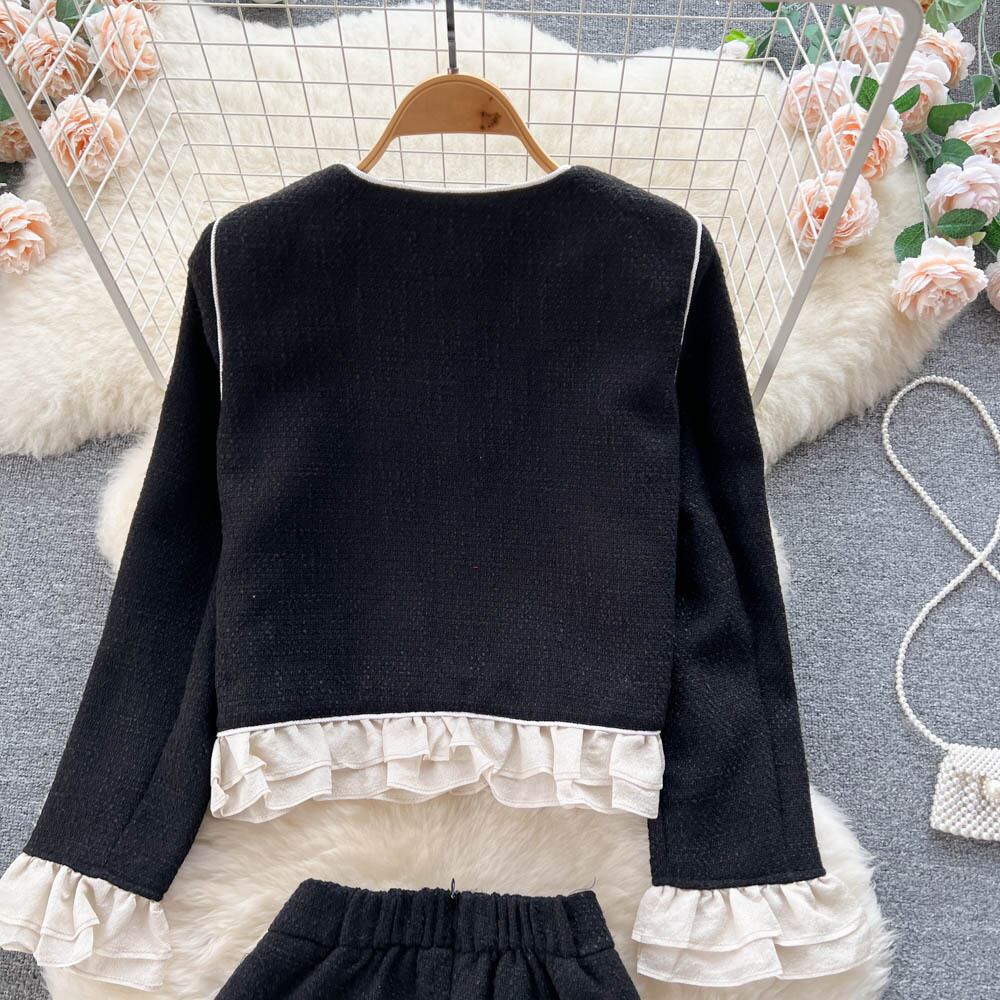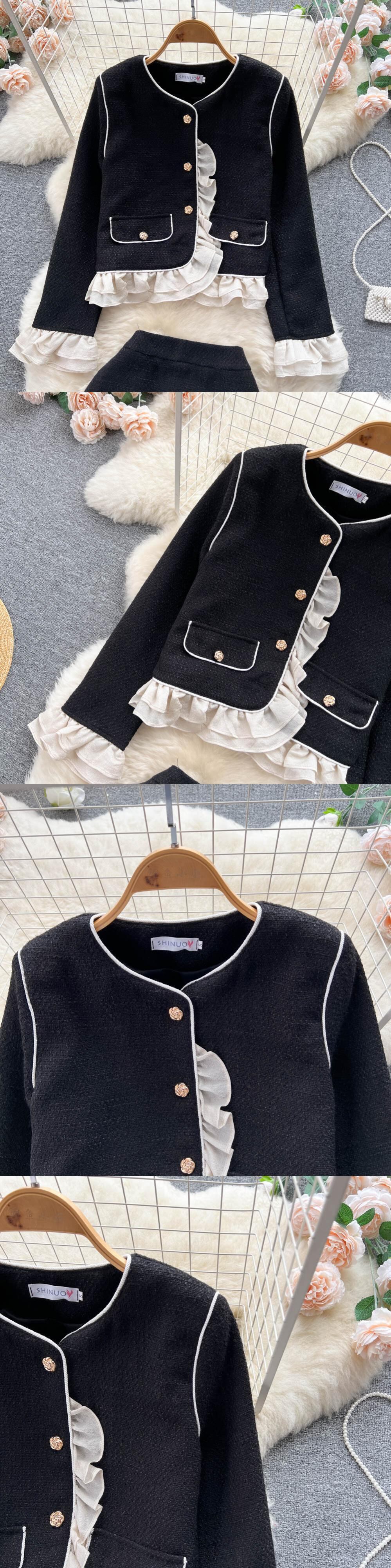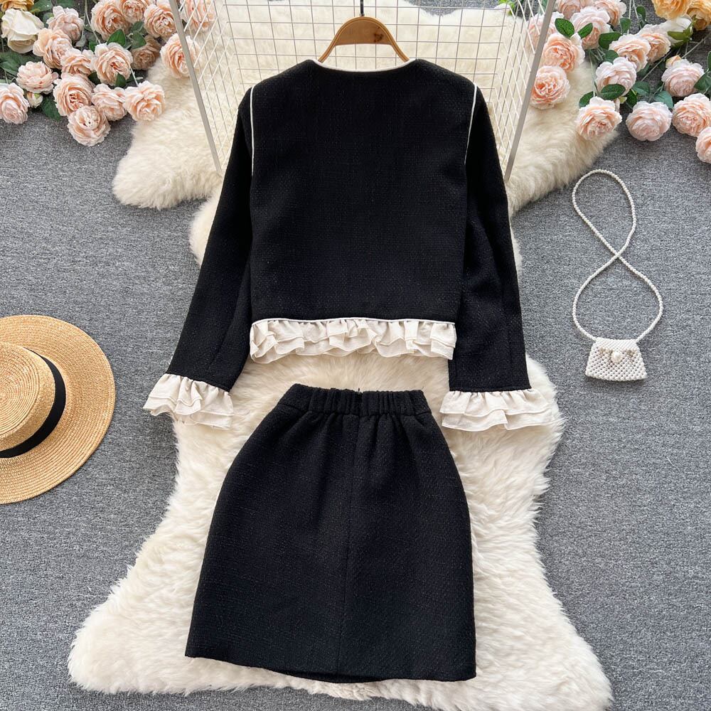 上質なツーピーススーツ、フェミニンな気質、セレブリティ、ニッチなデザイン、フリルショートコート+ヒップスカート lyxaj47188353945
