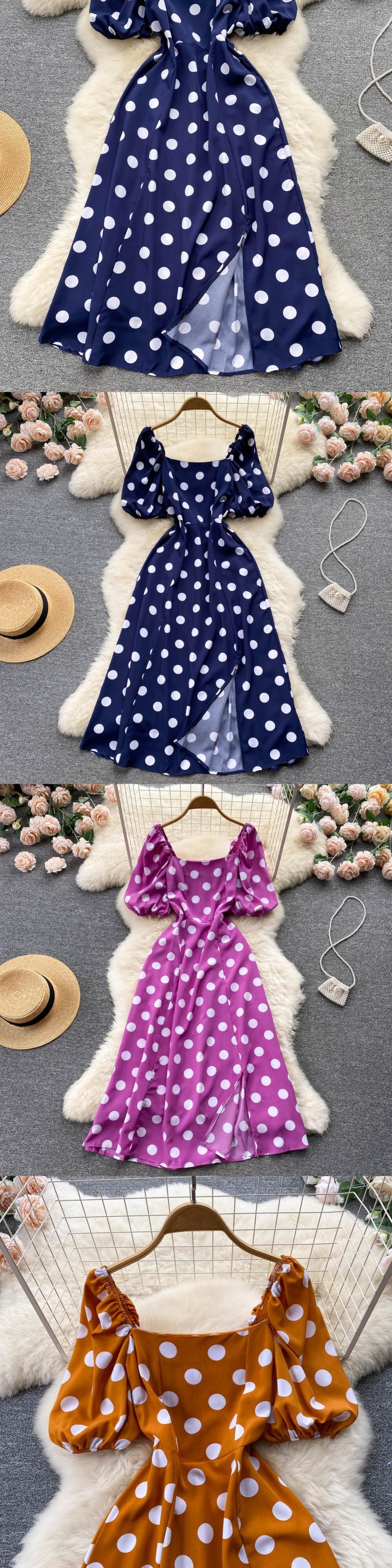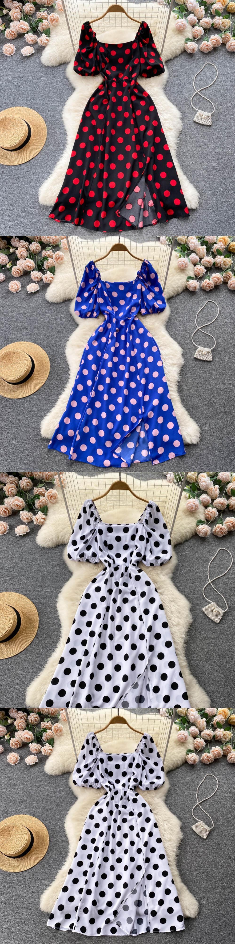 優しいフレンチスタイルの初恋スクエアネックドレス2022年夏の新作ウエストとスリムなパフスリーブスプリットAラインスカート サマー 夏物 スクウェア lyxaj33252504007