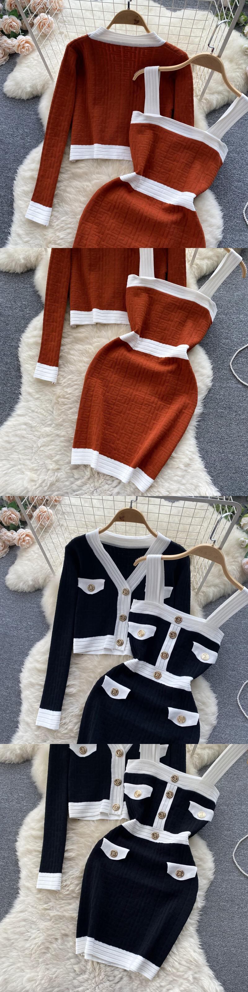 秋の新 2022 小さなフレグランススーツ女性のショートニットカーディガンコートオールマッチサスペンダードレスツーピース オータム 秋物 lyxaj96798810416