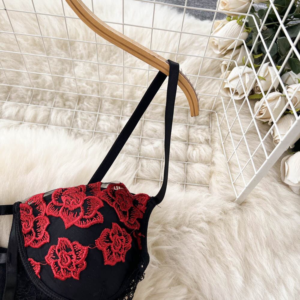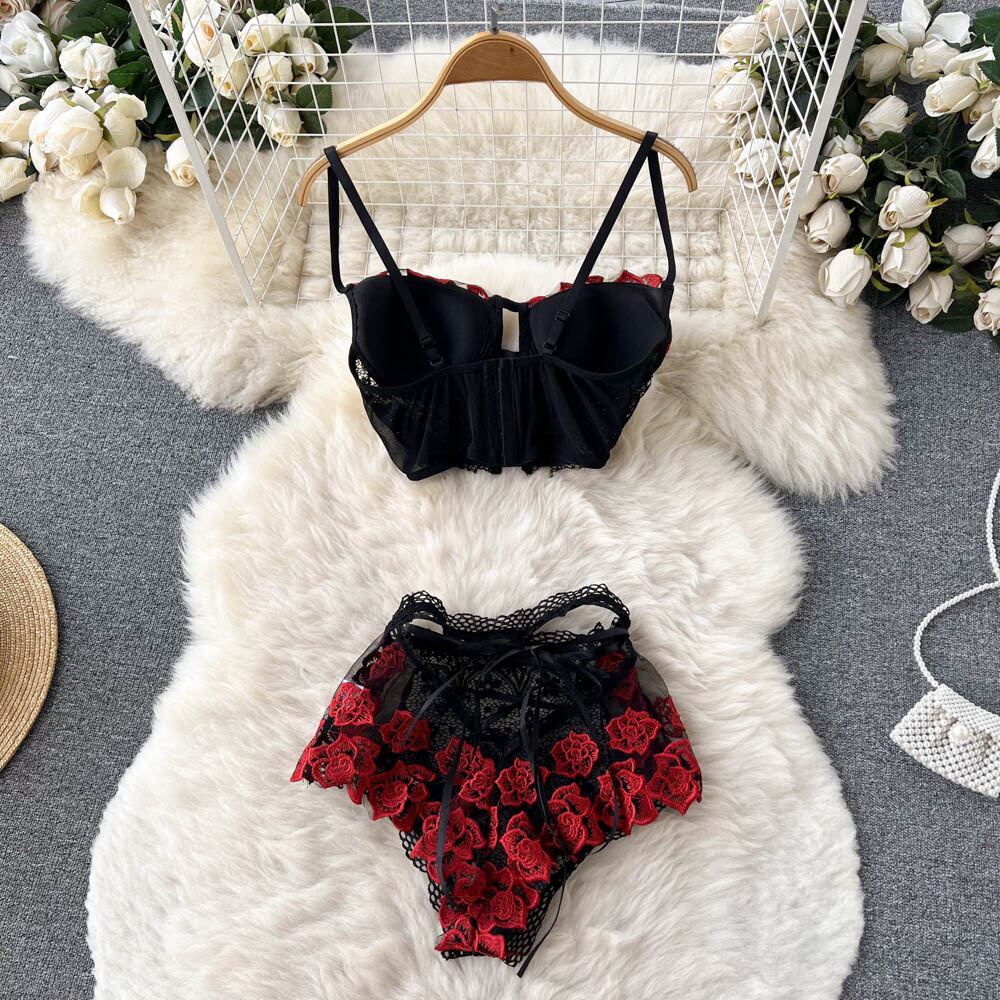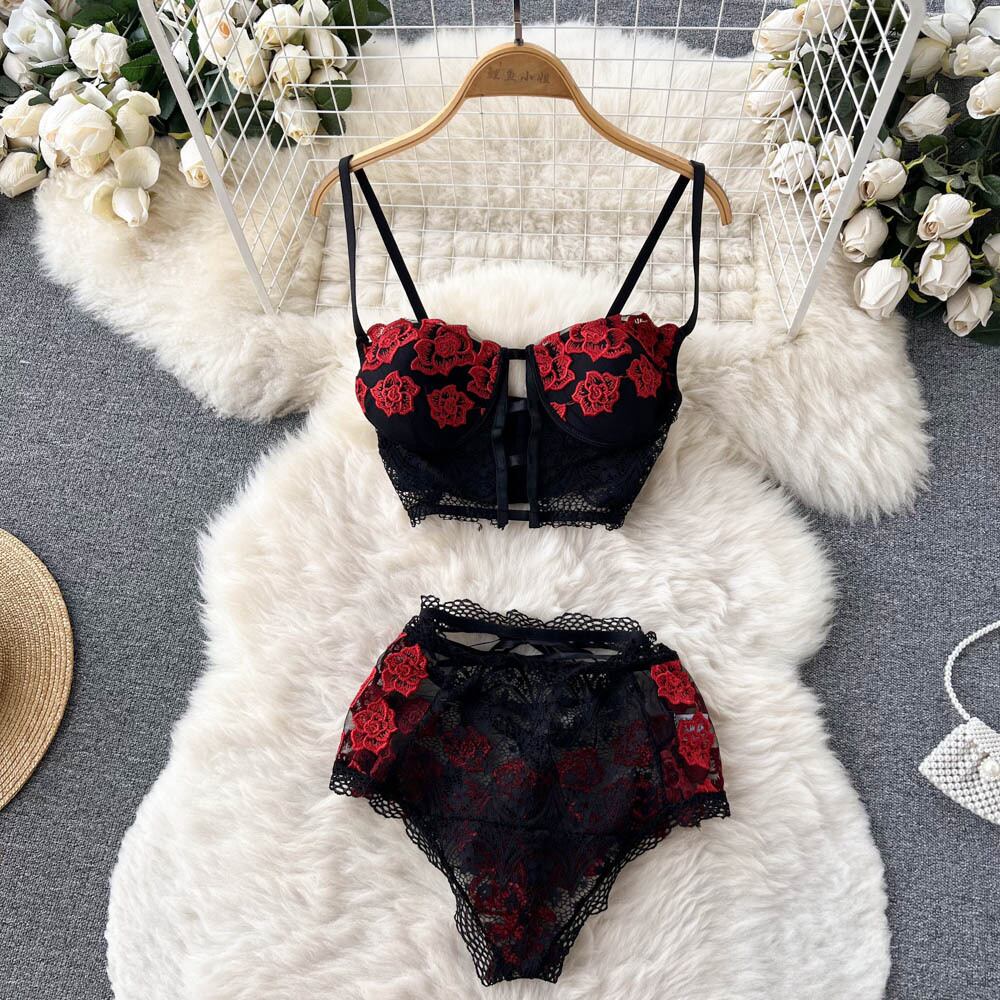 熱い女の子のレースのセクシーな小さな胸が集まったブラジャーの下着の女性の夏の薄いセクションミッドウエストの三角形の底入れの下着セット レッド サマー 夏物 lyxaj78665630269