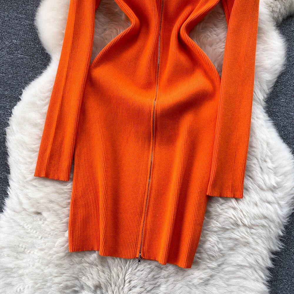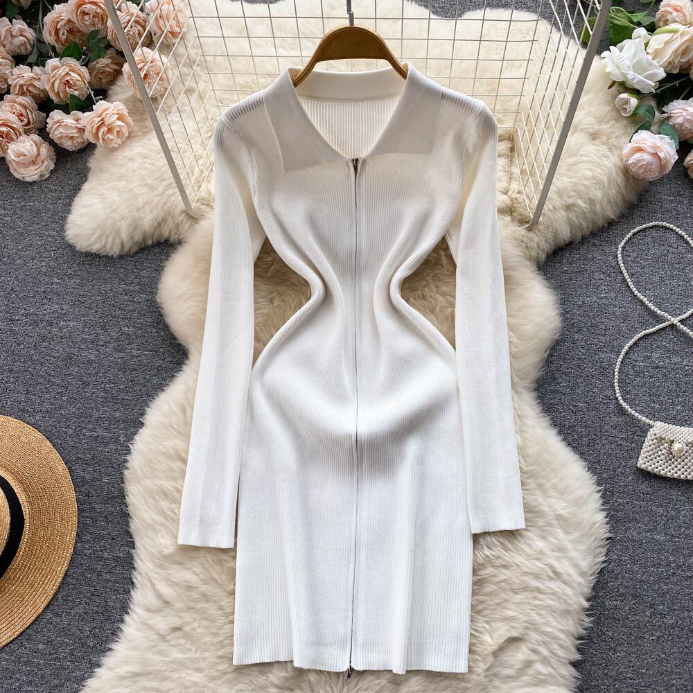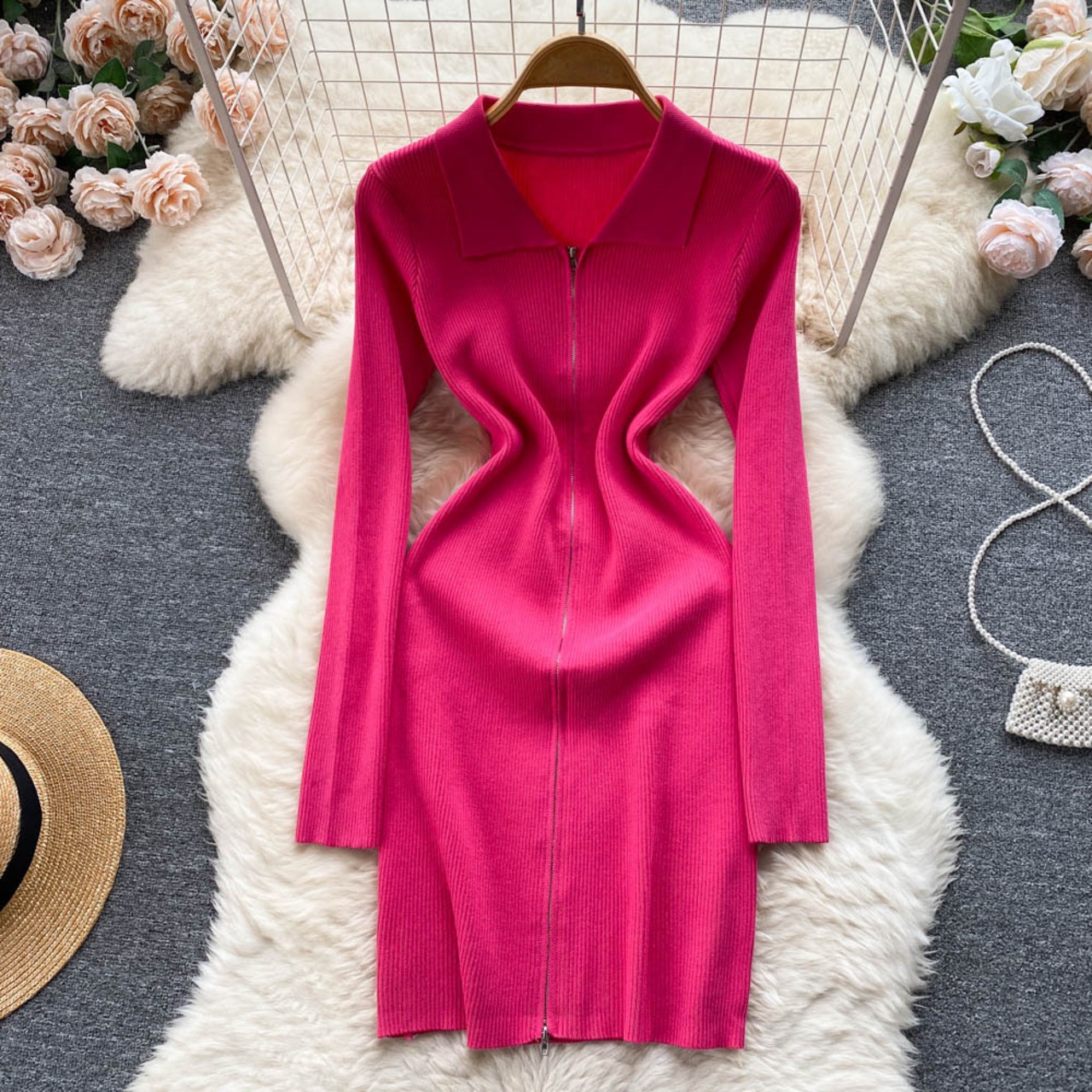 梨型ボディ美ファスナーポロ衿ドレス秋女性の純粋な欲望風ウエスト痩身バッグヒップスカート オータム 秋物 ピュア lyxaj98555272079