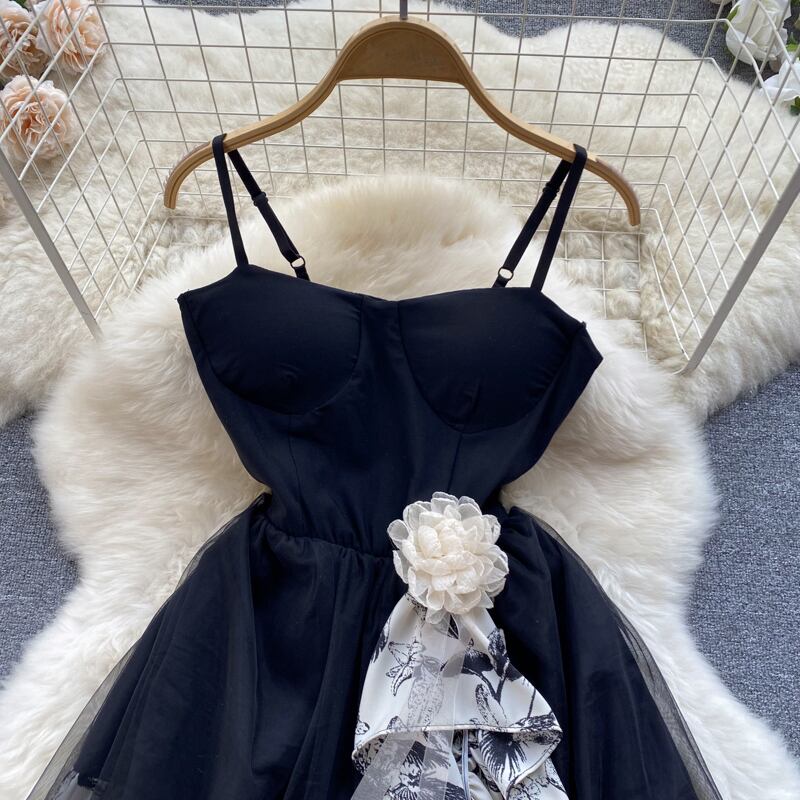 ハイエンドニッチデザインセンスプリント気質ドレス夏の女性のウエスト甘辛サスペンダースカート 大人ガーリー スウィート キュート カジュアル サマー 夏物 lyxaj61957323738