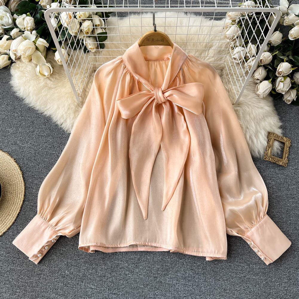 高品質のデザインセンスニッチな弓の長袖シャツトップ秋の女性のゆったりとしたオールマッチの気質の黒のシャツ ロング ブラック リボン オータム 秋物 lyxaj68378770979