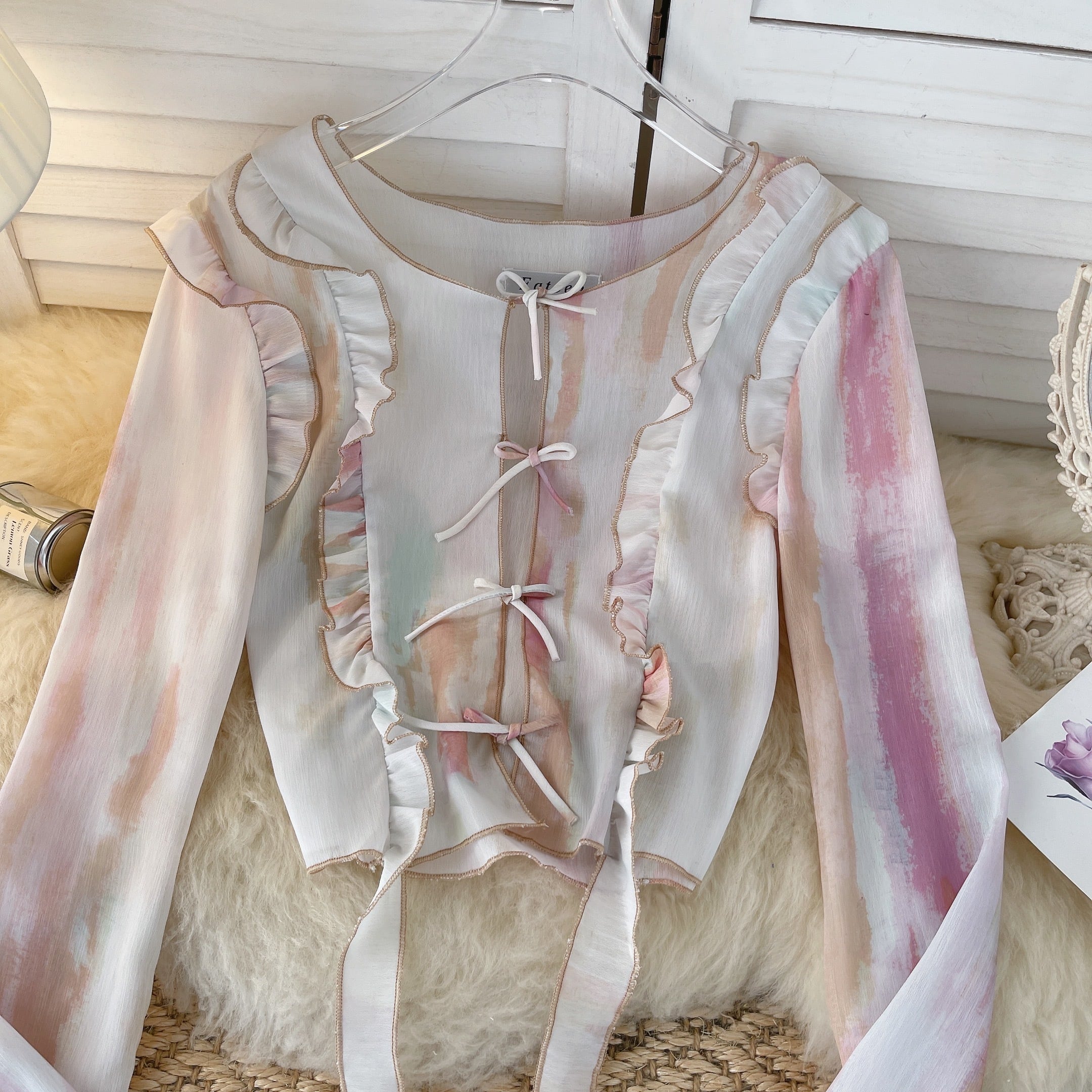 アメリカのレトロなレースアップ長袖 Tシャツ女性の秋の新しいホットガールショート Tシャツユニークな小さなトップの服 ロング オータム 秋物 lyxaj84566154522