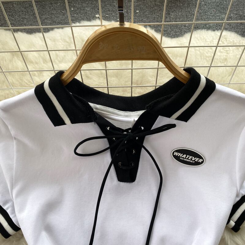 カレッジスタイル小男ストラップ付きポロ襟ドレス夏の女性の洋ナシ形ウエスト痩身ヒップスカート サマー 夏物 lyxaj8022536701