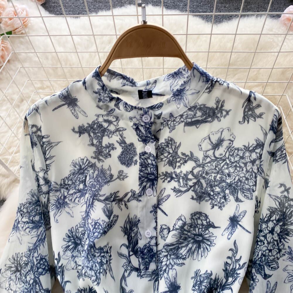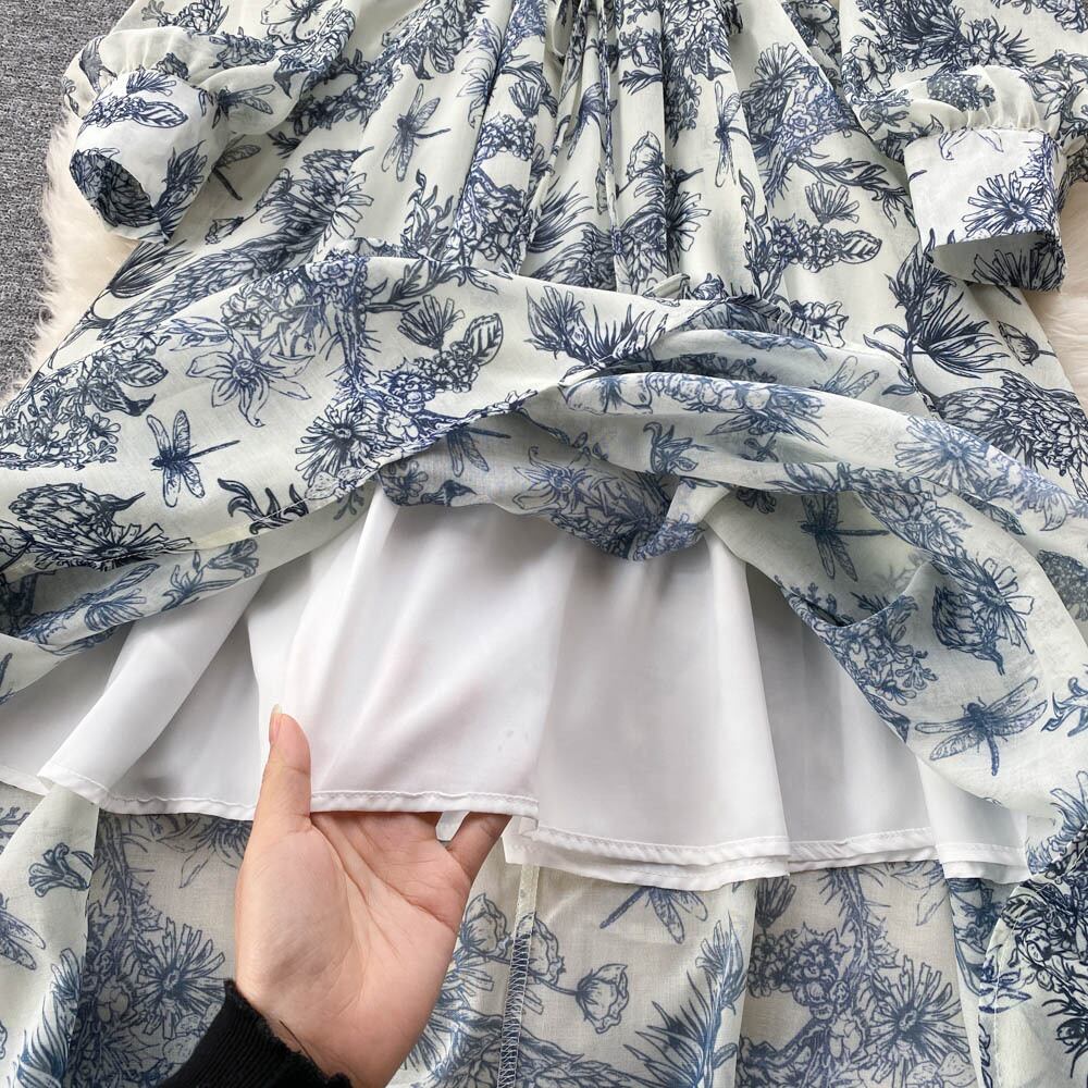 2022 winter new women's elegant stand-up collar print multi-button lace-up waist fashion long-sleeved dress ロング レース エレガント ウィンター 冬物 レースアップ lyxaj84111607322