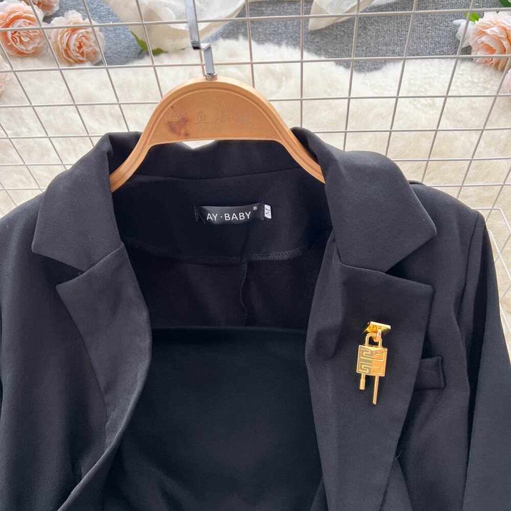 高品質のツーピース スーツ女性の秋の長袖ショート スーツ ジャケット ホット ガール不規則なサスペンダー ドレス ロング オータム 秋物 lyxaj44136116868