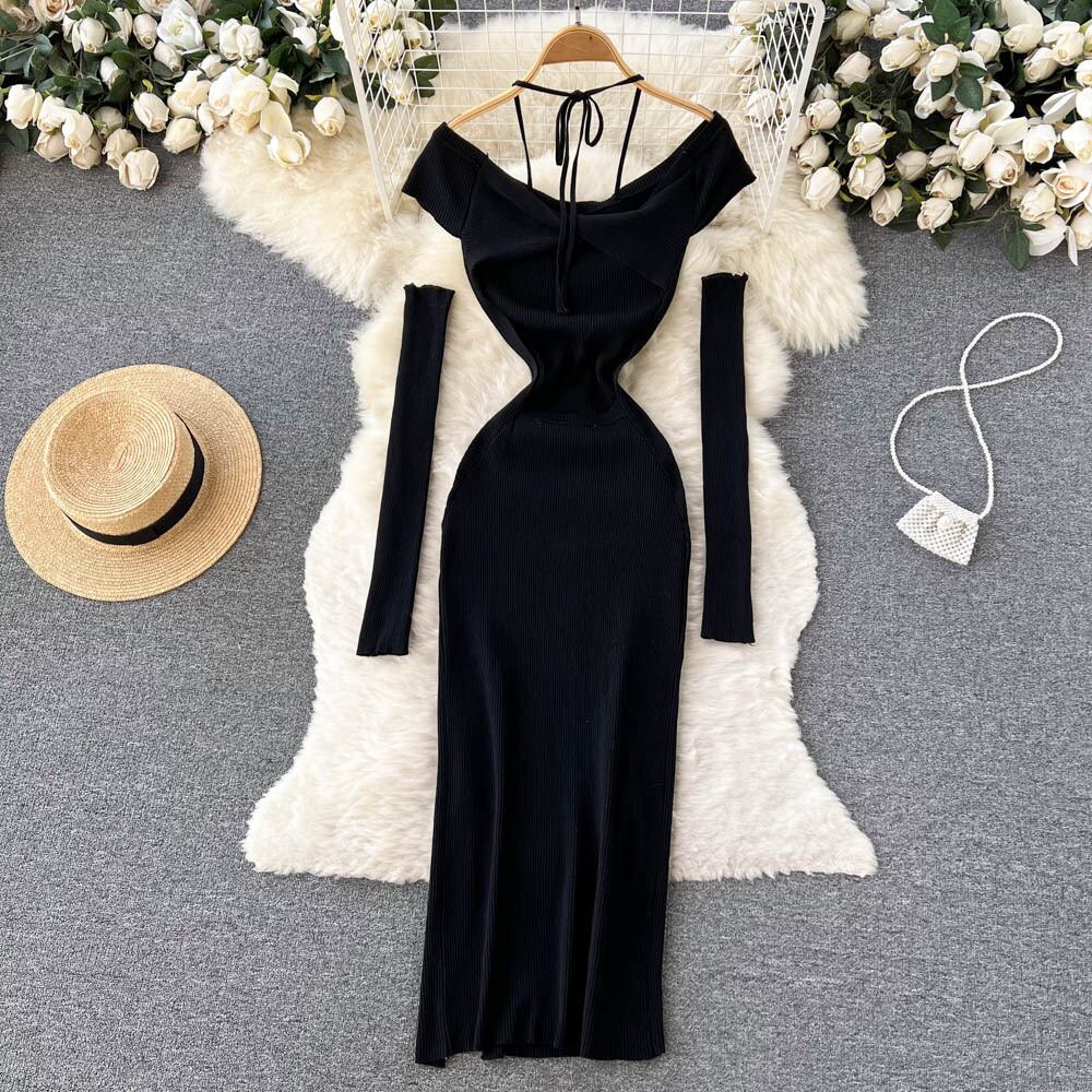 -quality short-sleeved hanging neck dress summer women's Hepburn style belt sleeves slim bag hip little black dress ブラック サマー 夏物 ハーネス ベルト スリム lyxaj73501246883