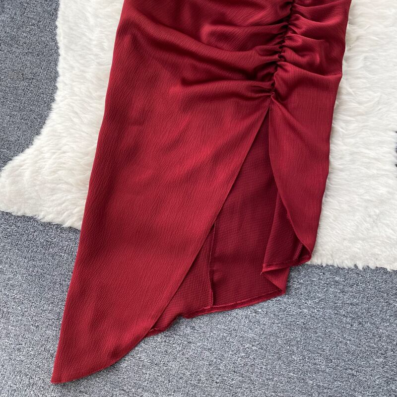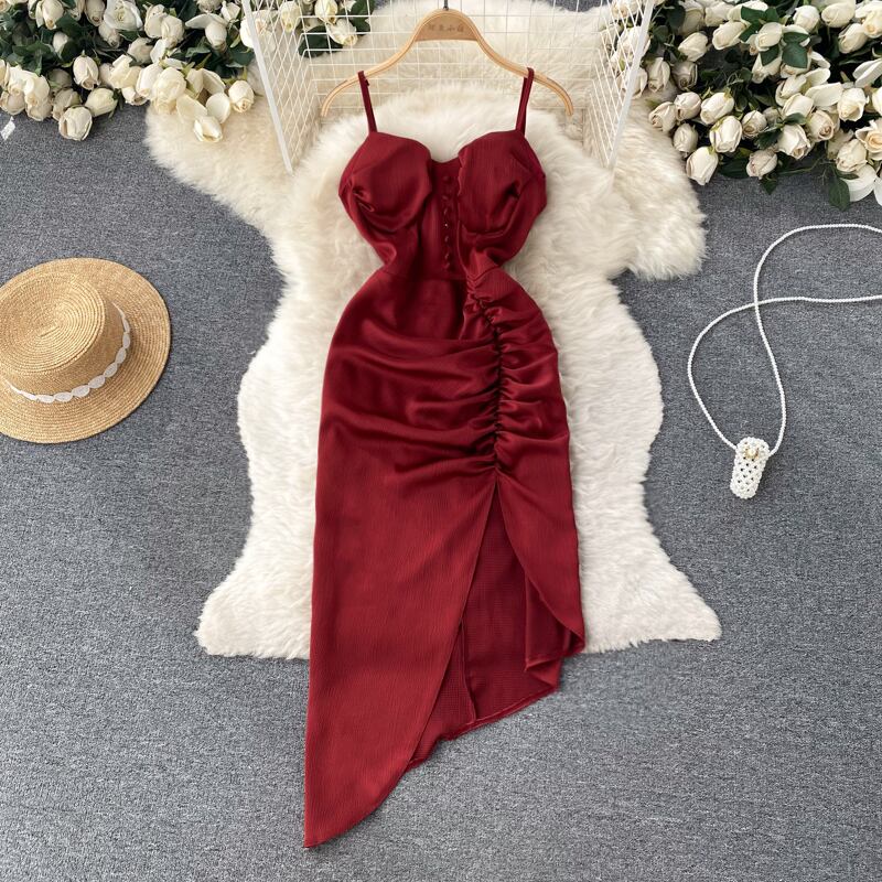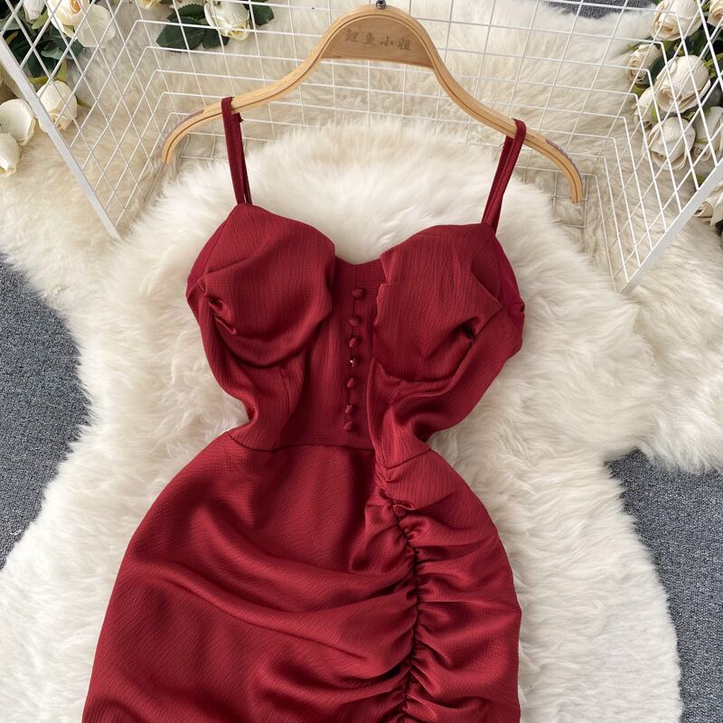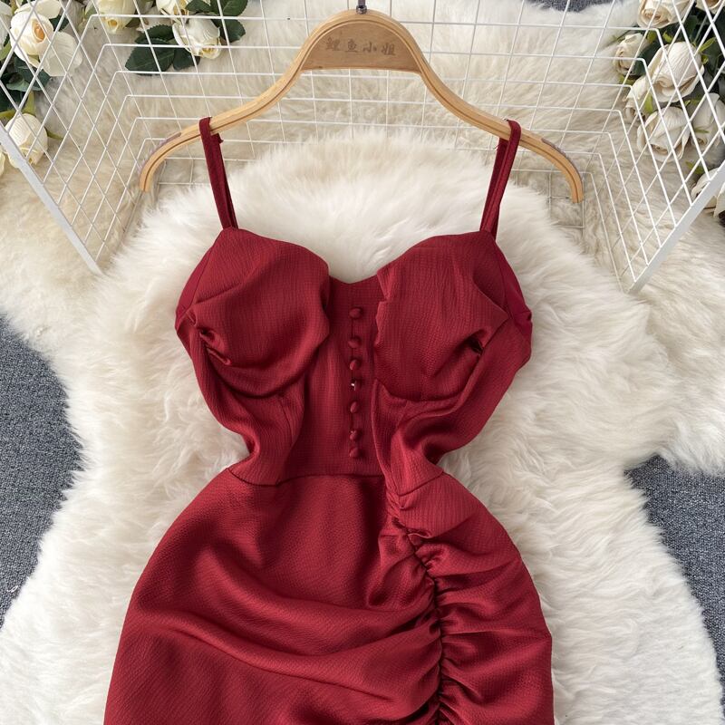 ハイエンド、ニッチなデザイン、プリーツの赤い気質のドレス、夏の女性のドレス、ウエスト、スリム、サスペンダーのドレス レッド サマー 夏物 lyxaj56991317168