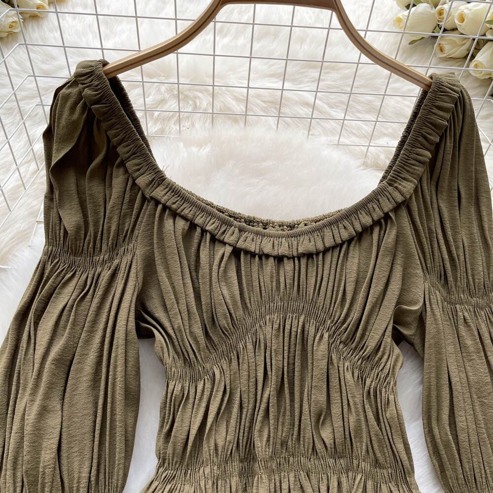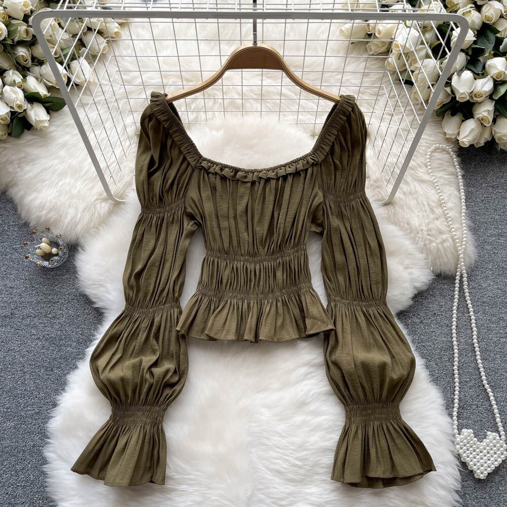 フレンチデザインセンスニッチプリーツベルスリーブシャツトップ秋の女性のスリムショートシャツ美しい小さなシャツ潮 オータム 秋物 lyxaj85951879663