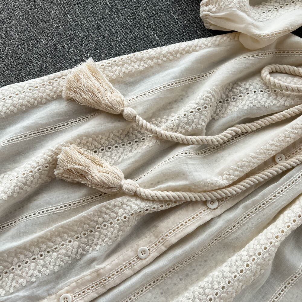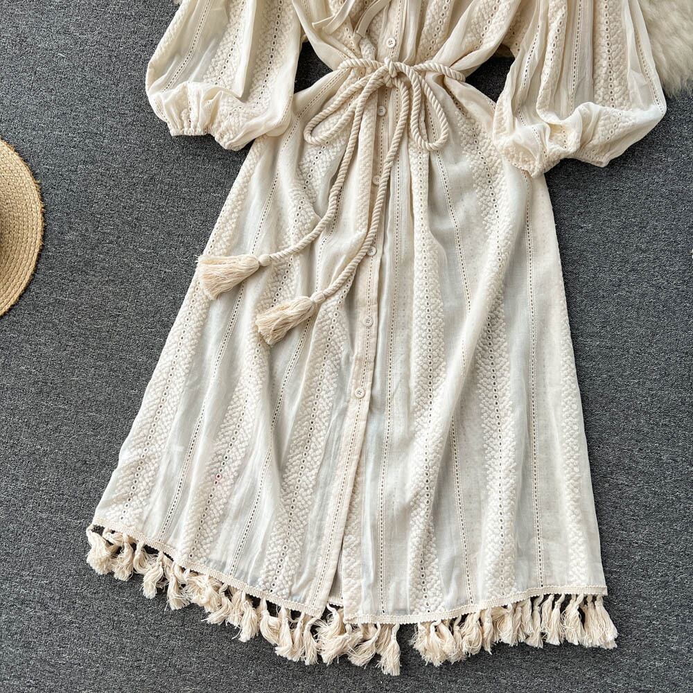 ボヘミアン リゾート スタイル レトロ ランタン スリーブ ドレス夏の女性のフレンチ ウエスト V ネック シャツ ドレス ランタンスリーブ サマー 夏物 Vネック lyxaj27474486976
