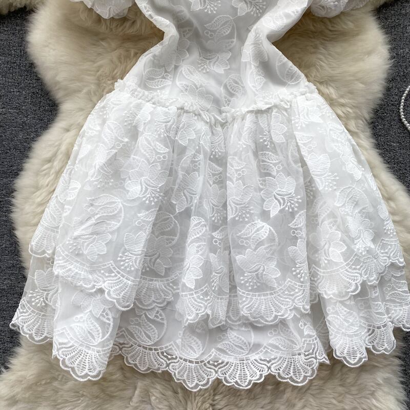 小粋で綺麗なレースのパフスリーブドレス 夏の女性のアーティスティックなセンスの森姫初恋ドレス サマー 夏物 lyxaj52688559796
