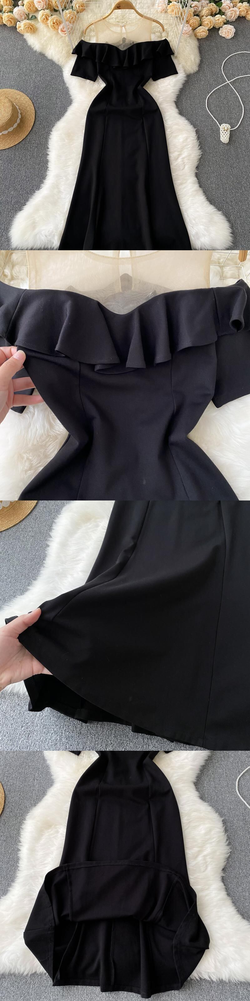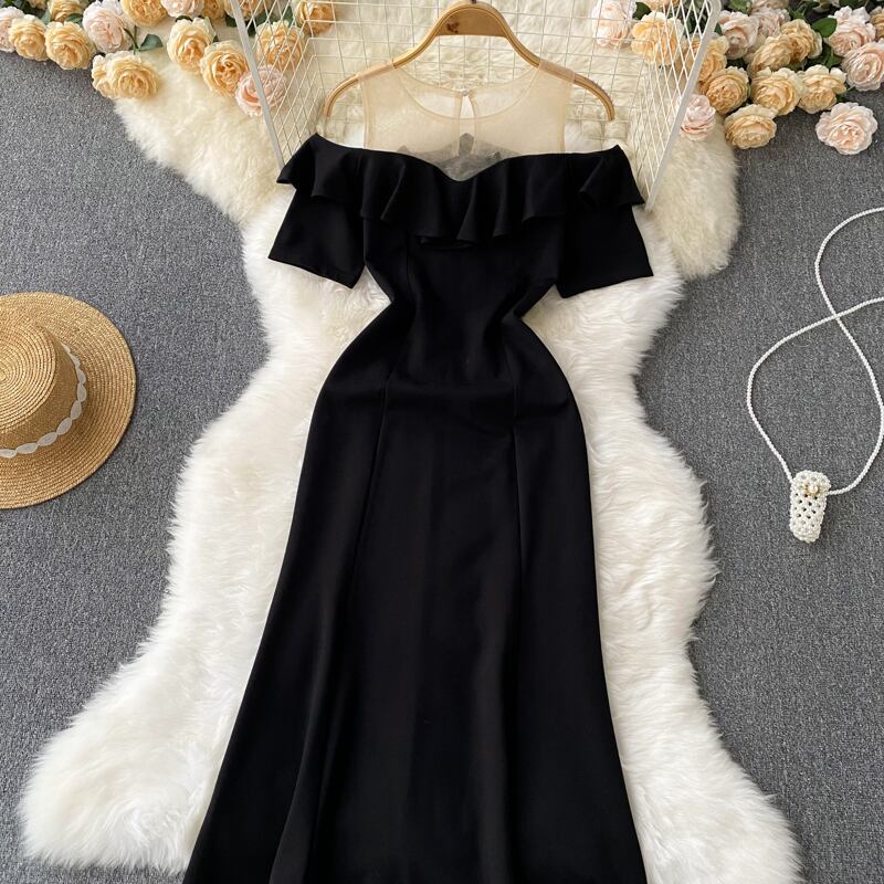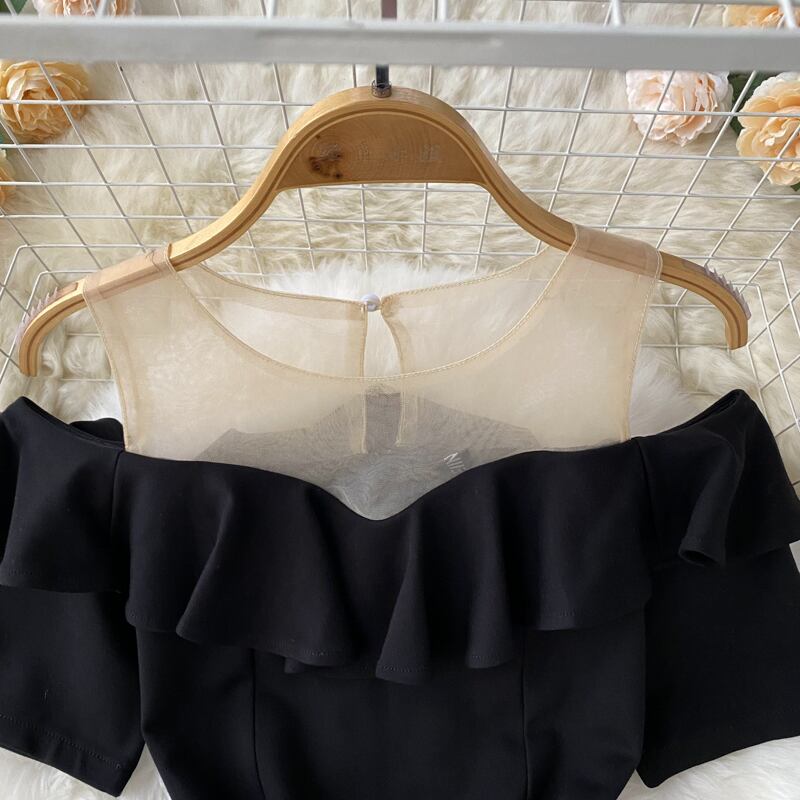夏の新しいメッシュステッチバブル半袖オフショルダースカートの女性のウエストバッグヒップショー薄い気質フィッシュテールドレス サマー 夏物 lyxaj49854450276