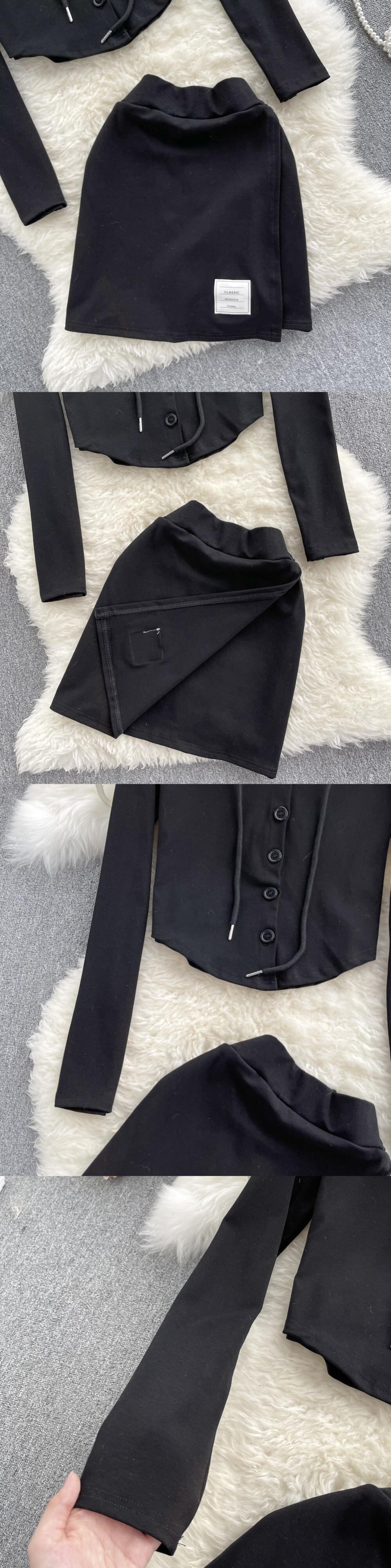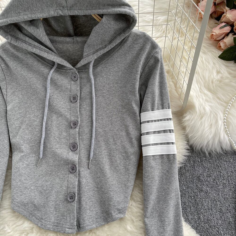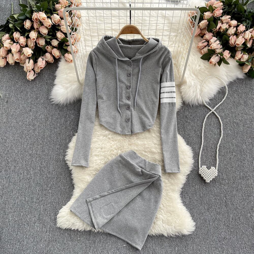 香港スタイルのレトロシックなフード付きシングルブレストショートトップハイウエストスカートカジュアルファッションツーピーススーツ lyxaj19066400427