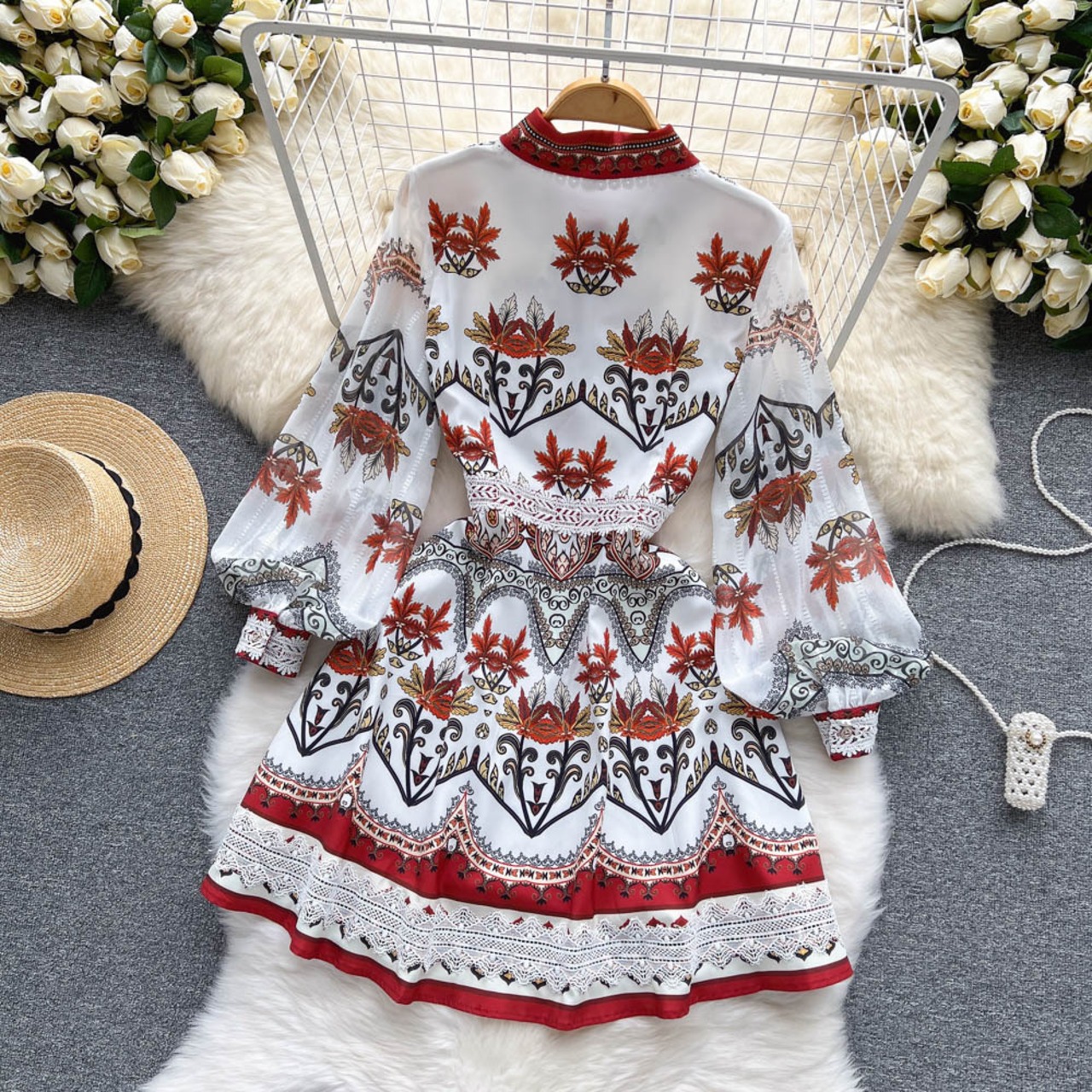 プリンセス スタイル ティー ブレーク フレンチ ハイエンド ラペル ステッチ レース ドレス女性のウエスト気質 A ラインふくらんでいるスカート Aライン lyxaj14176141611