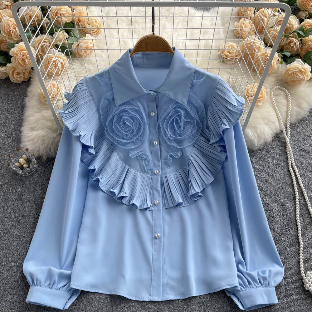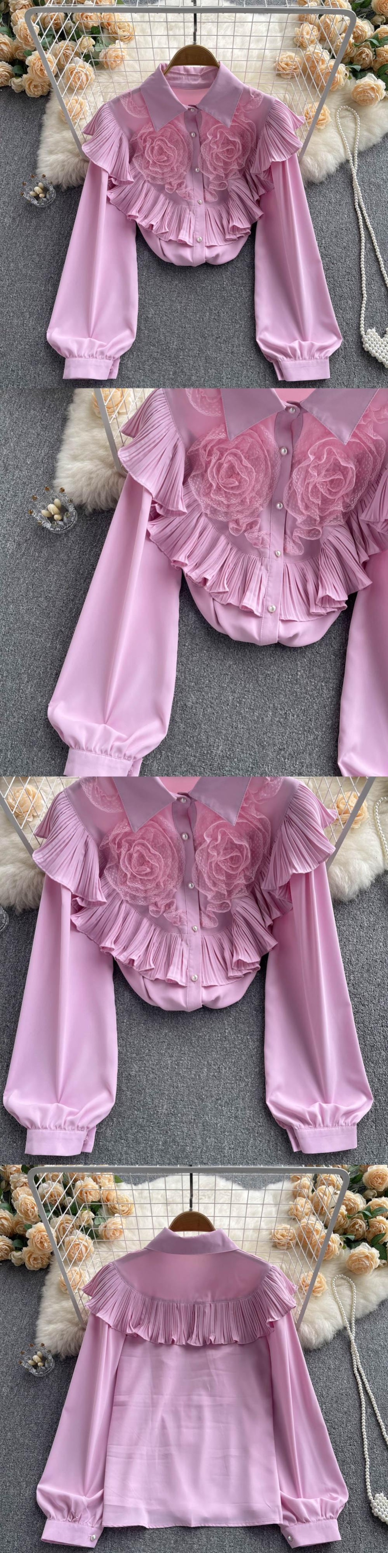 フレンチスウィートデザインセンスフリル気質長袖シャツトップ秋の女性のハイエンドシックで美しい小さなシャツ ロング 大人ガーリー キュート カジュアル オータム 秋物 lyxaj68444521990