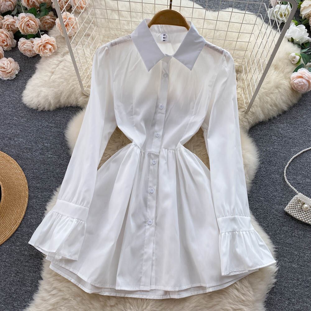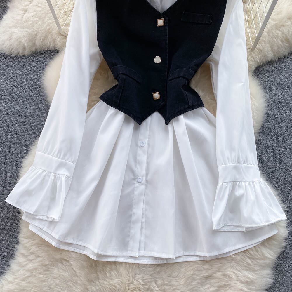 小さな有名人の気質の長袖のドレスの夏の女性のハイエンドの軽いおなじみのスタイルのデニムのステッチのシャツのスカート ロング サマー 夏物 lyxaj36309557125