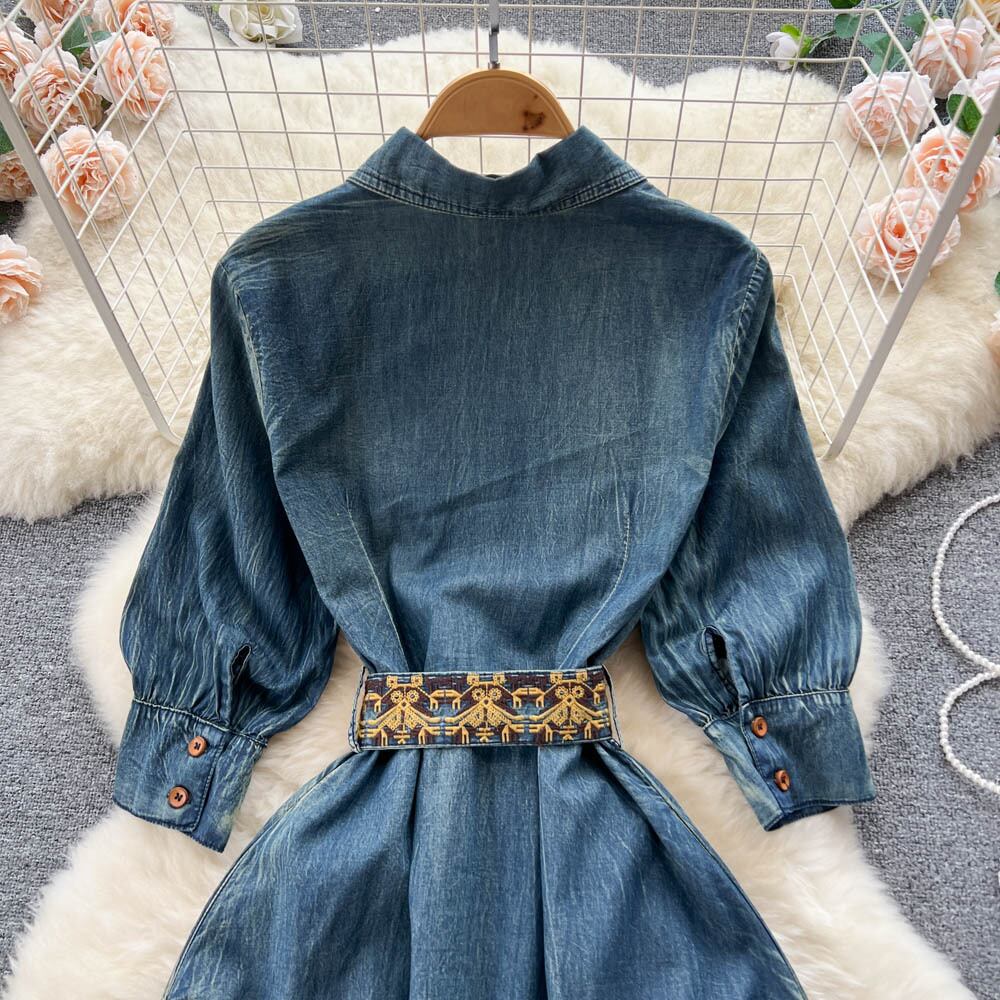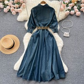フランスのレトロなニッチなデザインのウエストが薄い半袖のドレスの秋の女性のハイエンドのAラインのロングスカートのトレンド オータム 秋物 lyxaj56184592774