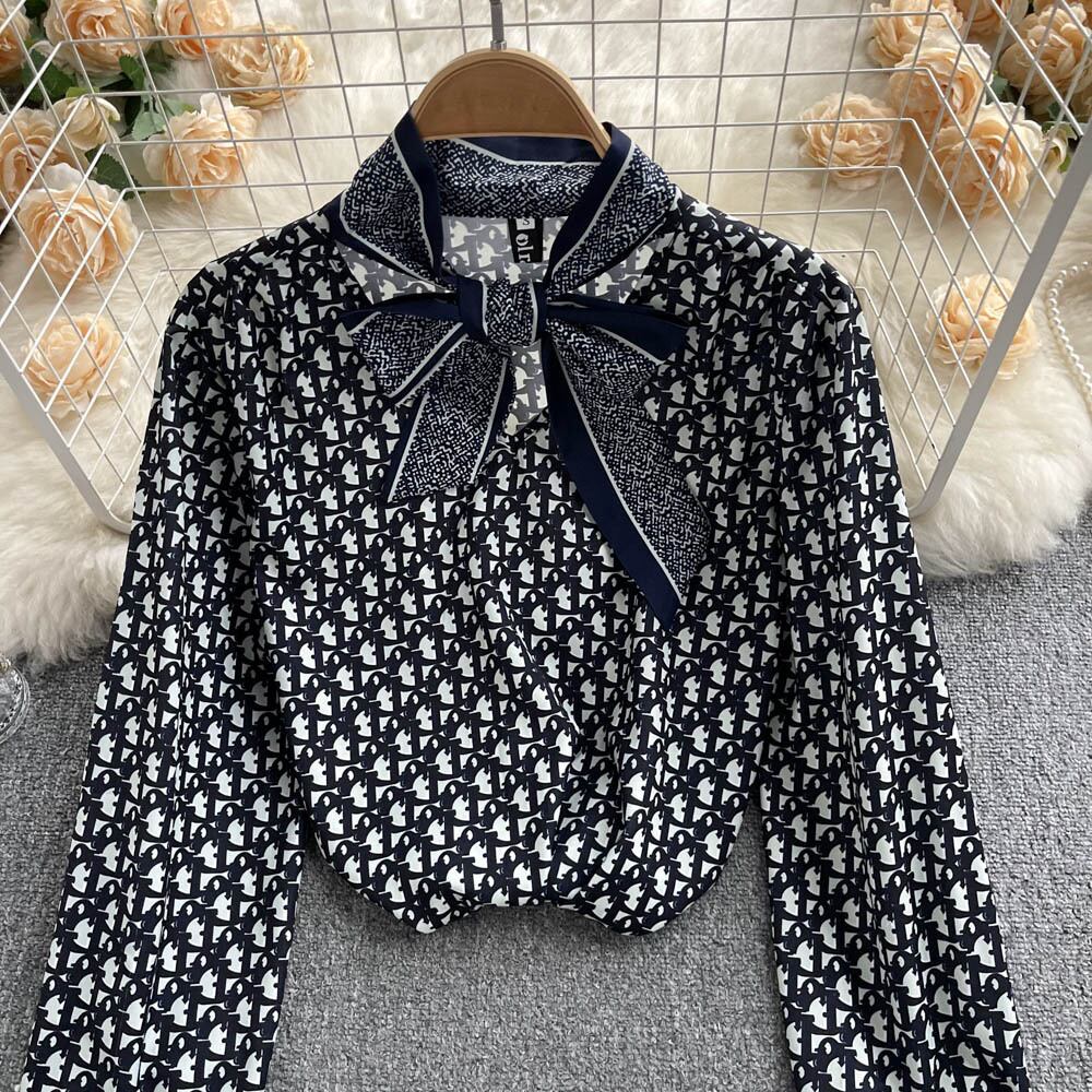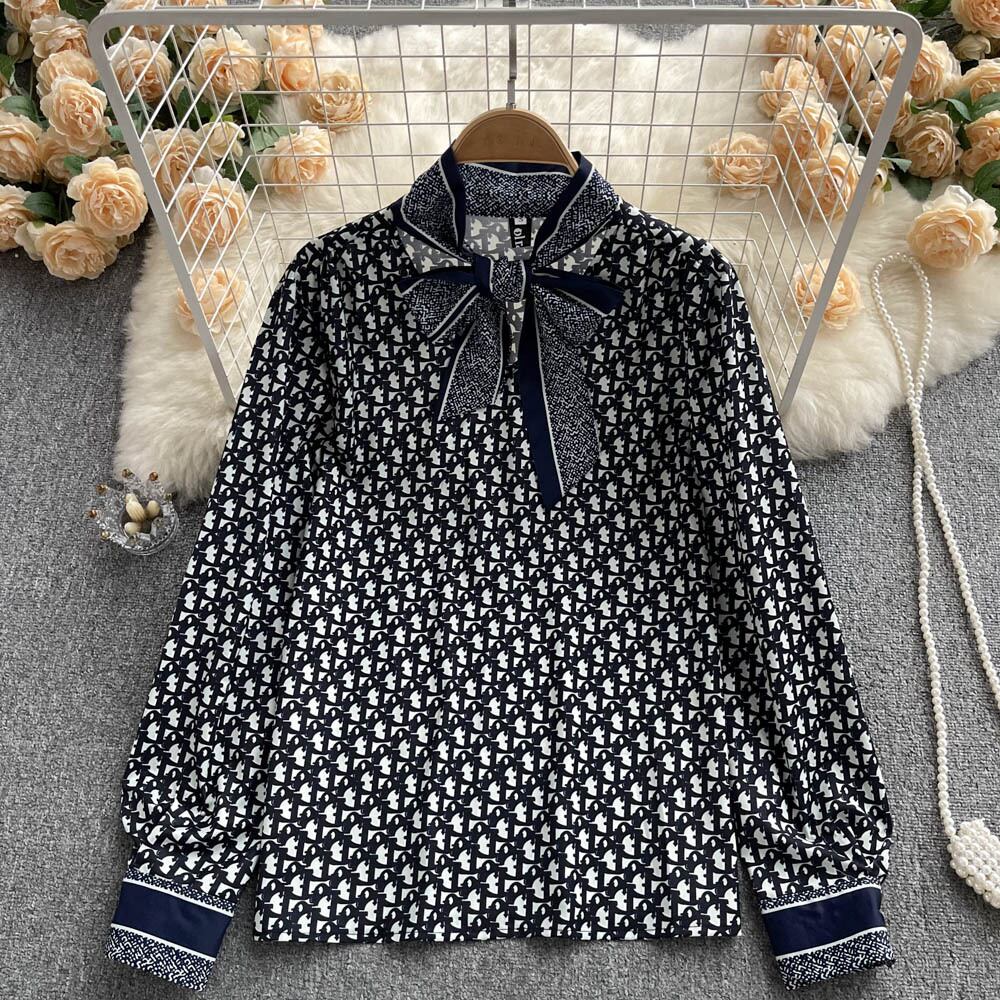 高品質のボウプリント気質長袖シャツトップ初秋の女性のフレンチファッションシックで美しい小さなシャツの潮 ロング リボン オータム 秋物 lyxaj64457886069
