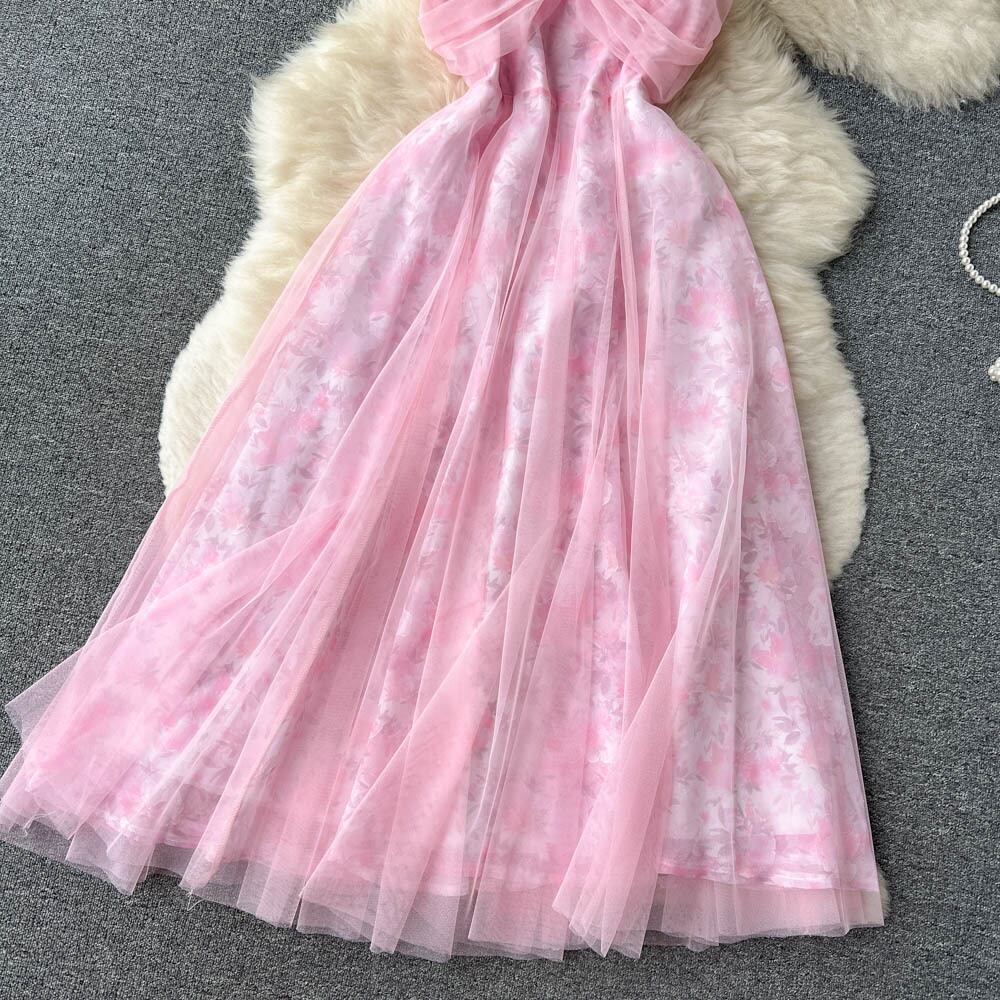 Gentle French style first love pink dress long summer 2022 new sweet temperament waist-reducing fairy skirt ロング ピンク 大人ガーリー スウィート キュート カジュアル サマー 夏物 スカート lyxaj59906539872