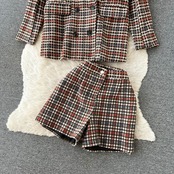 有名人の気質Xiaoxiangfengのツーピースのスーツの女性の秋の格子縞の長袖のスーツのジャケットのゆったりとしたワイドレッグのショートパンツ ロング オータム 秋物 ショーツ ブルマー lyxaj34703454176