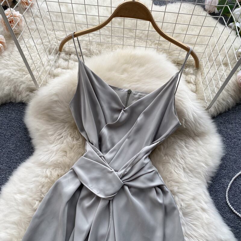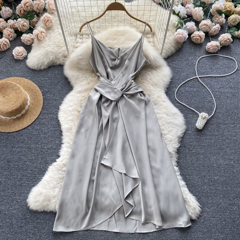有名人のハイエンドのセクシーなサスペンダー ドレス女性の夏のサテン ウエスト薄い不規則な小さな A ライン スカート サマー 夏物 Aライン lyxaj14979033912
