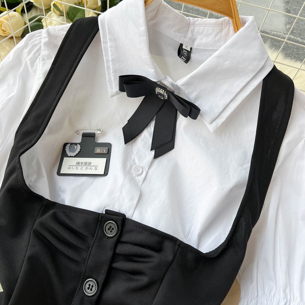 Autumn 2022 new women's suit college style puff sleeve shirt top halter neck waist slim dress オータム 秋物 スリム lyxaj79656953286