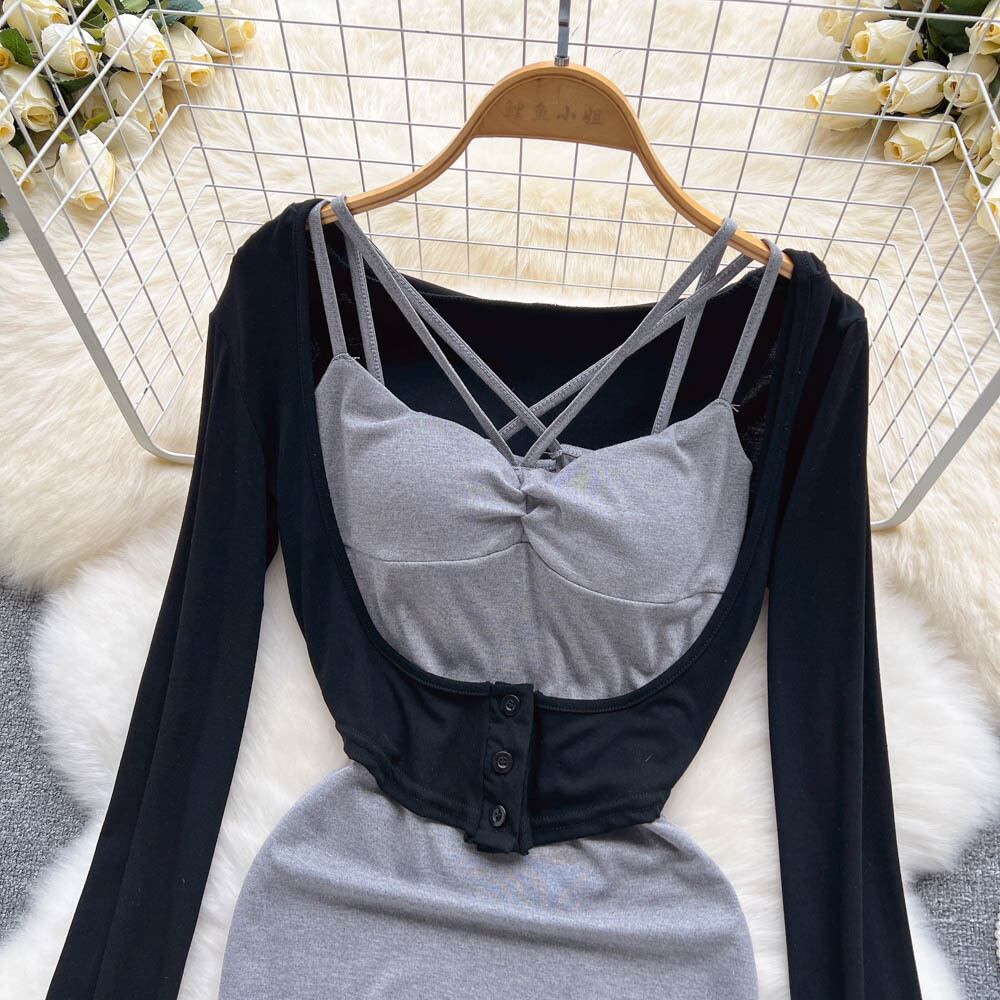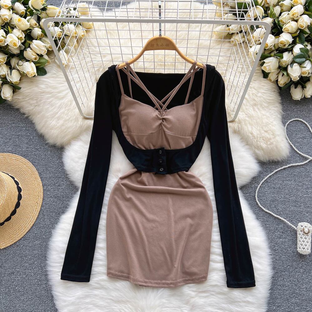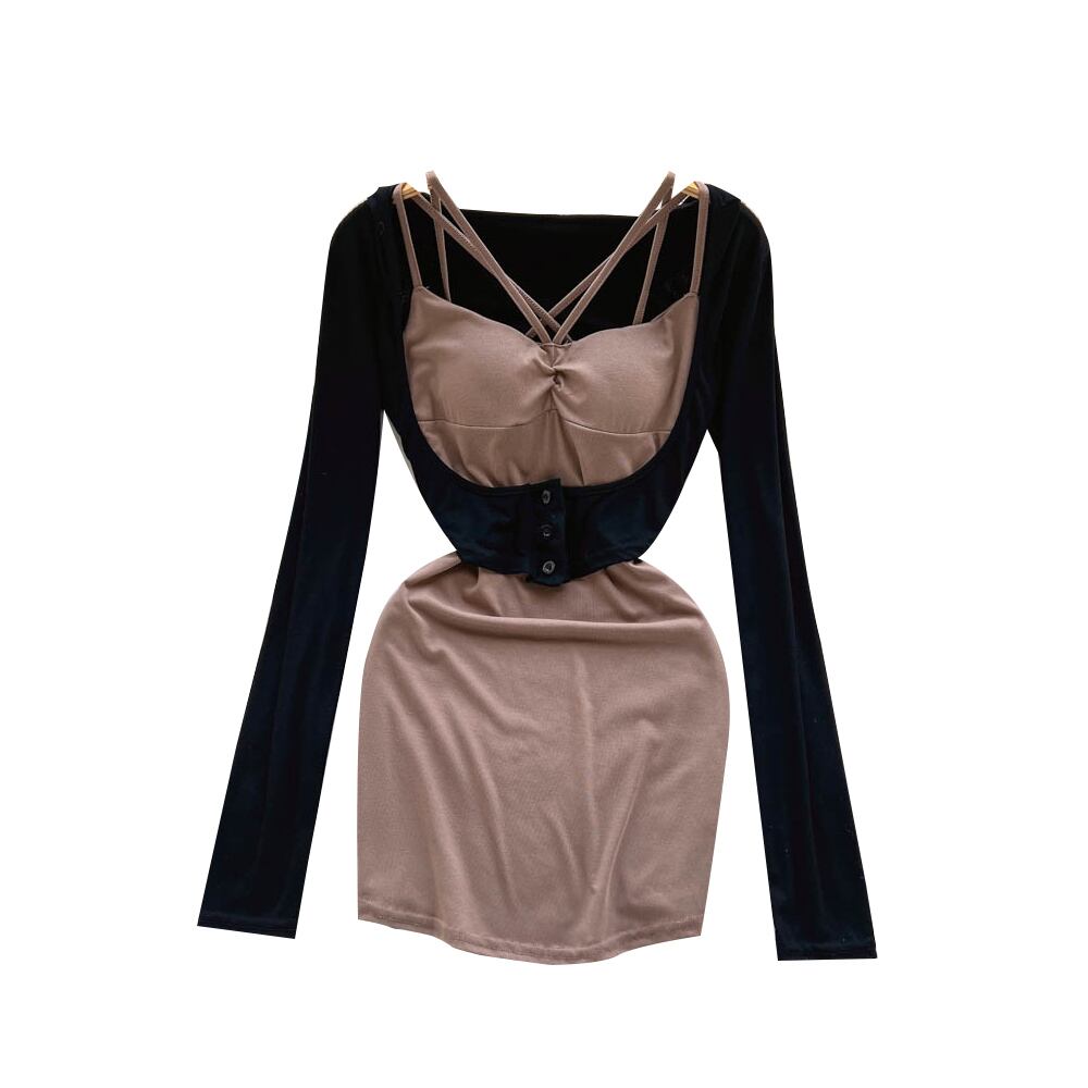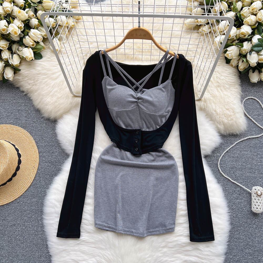 軽くおなじみスタイルツーピーススーツ女性夏スタイル純粋な欲望スタイルサスペンダードレスショートロングスリーブベストカーディガントップトレンド 長袖 サマー 夏物 ピュア lyxaj51629516853