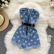 夏の新デザインセンススモールクロスチューブトップデニムジャンプスーツショーツ女性ホットガールファッションジャンプスーツパンツ サマー 夏物 ブルマー lyxaj83047406755