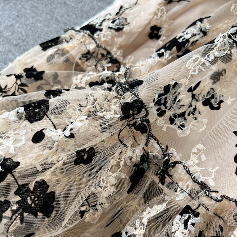 フレンチヘップバーン風 ライト ラグジュアリー 夏 新作 レース刺繍 ステッチ レトロドレス 半袖 メッシュ プリンセススカート サマー 夏物 lyxaj30508794549
