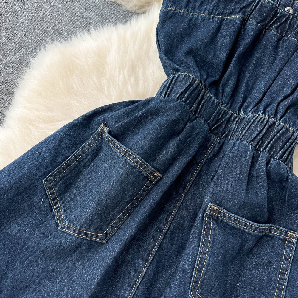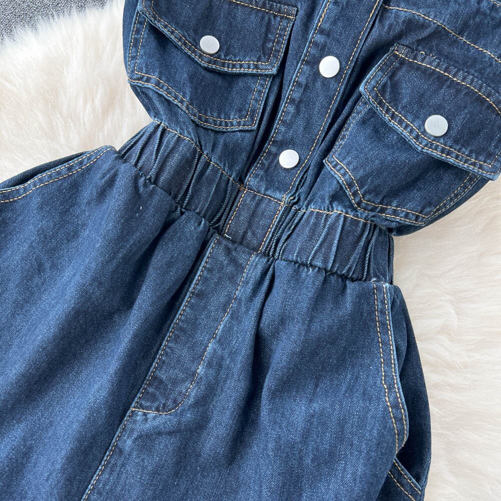 小ぶりでニッチなデザイン感のカーリングウエストゆったりワイドレッグジーンズ レディース 夏 薄手 オールマッチ オーバーオール サマー 夏物 lyxaj64912913595