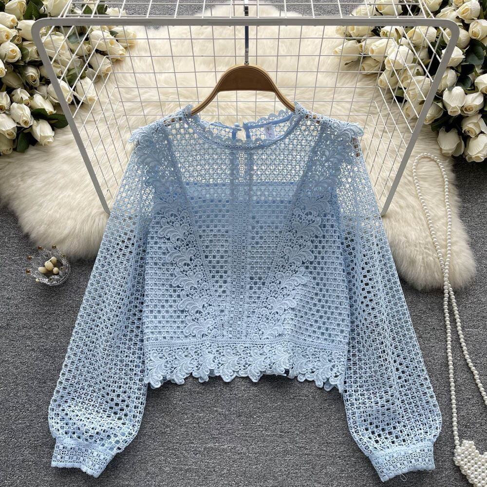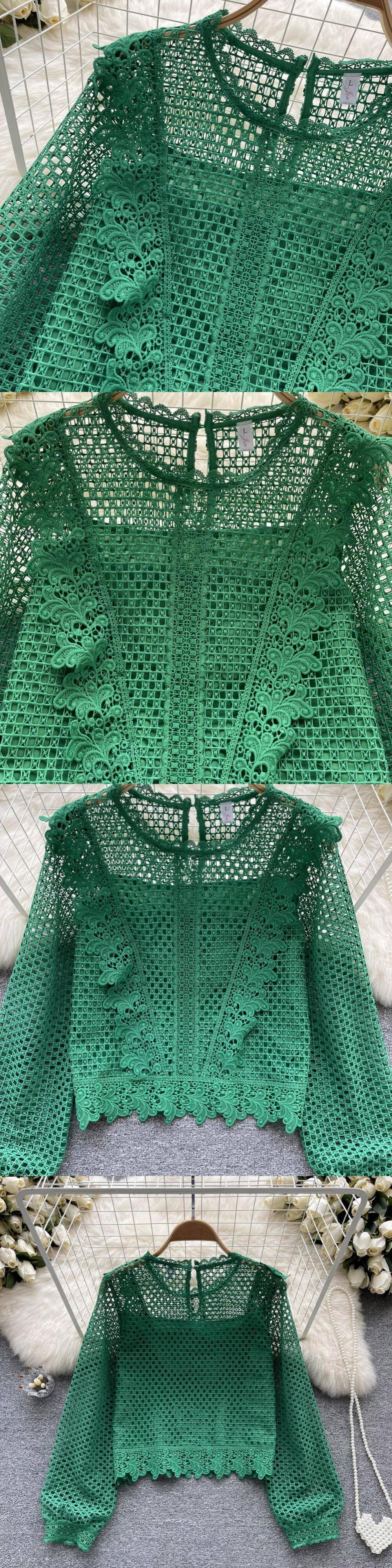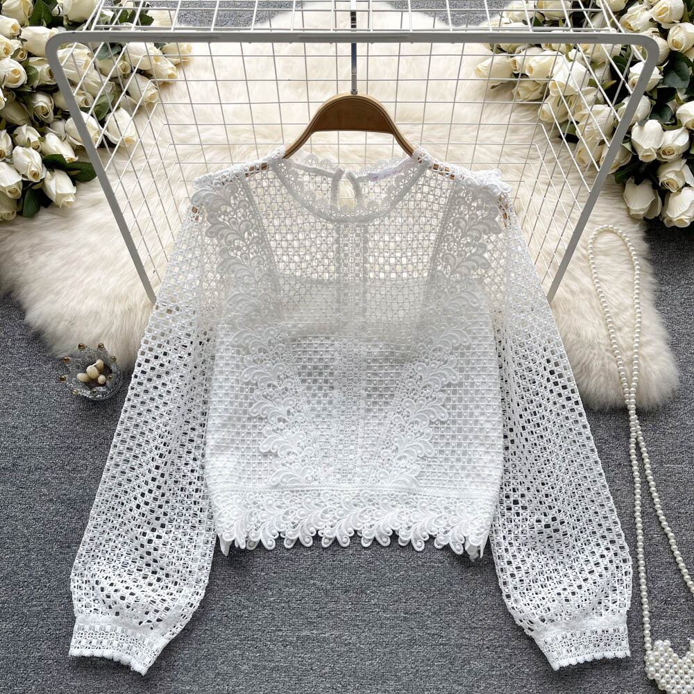 ファッショナブル、ファッショナブル、ルーズ、お腹をカバー、ニッチなデザイン、中空、長袖レースシャツ、女性の秋の気質、美しいトップ ロング オータム 秋物 lyxaj60286879566