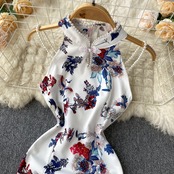 ハイエンドな気質の女性改良されたチャイナ スタンド アップ カラー ドレス女性のスリム スリム オフショルダー ノースリーブ バッグ ヒップ花柄スカート lyxaj32130534506