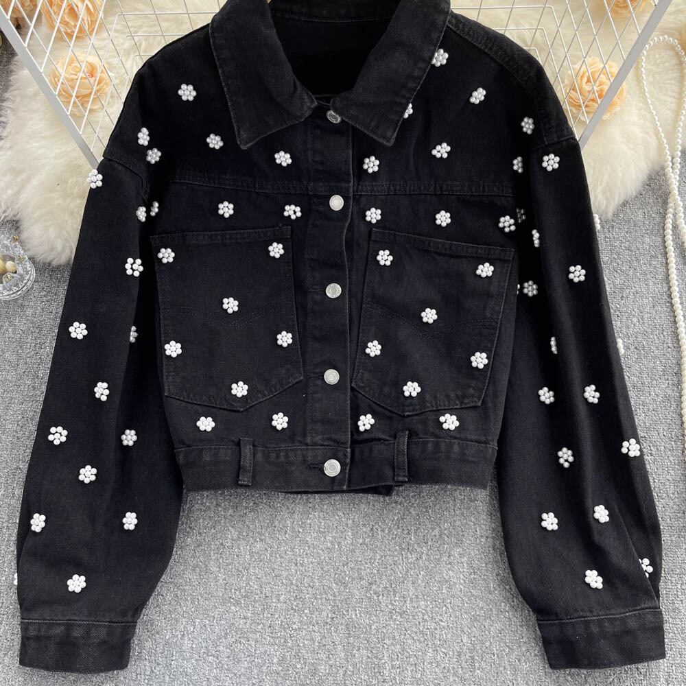 香港風レトロルーズショートデニムジャケットレディースサマービーズ刺繍総柄長袖上潮原宿香港風 ロング かわいい 夏物 lyxaj36970527845