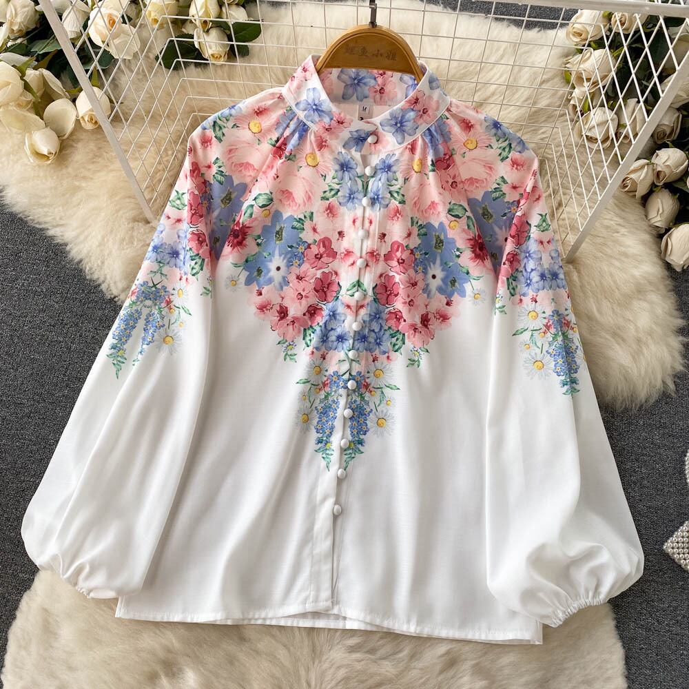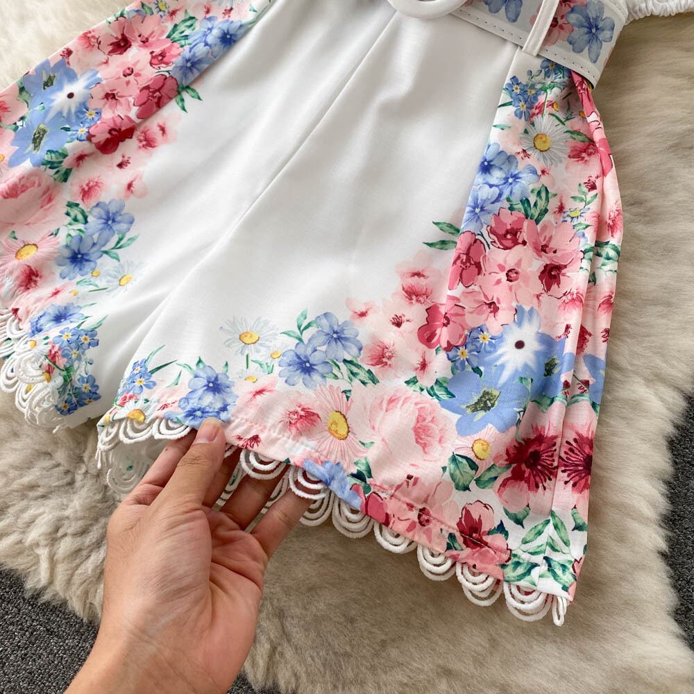 ネットレッドの年齢を減らすツーピースのスーツの女性の夏のプリント提灯の袖のシャツのトップハイウエストのゆったりとしたAラインのワイドレッグショーツ ハイウェスト ランタンスリーブ サマー 夏物 ブルマー lyxaj85898195309