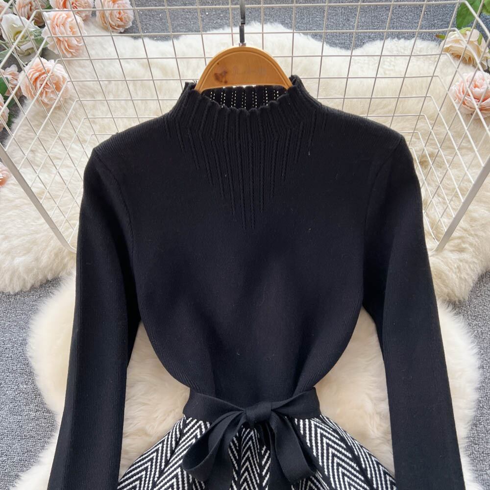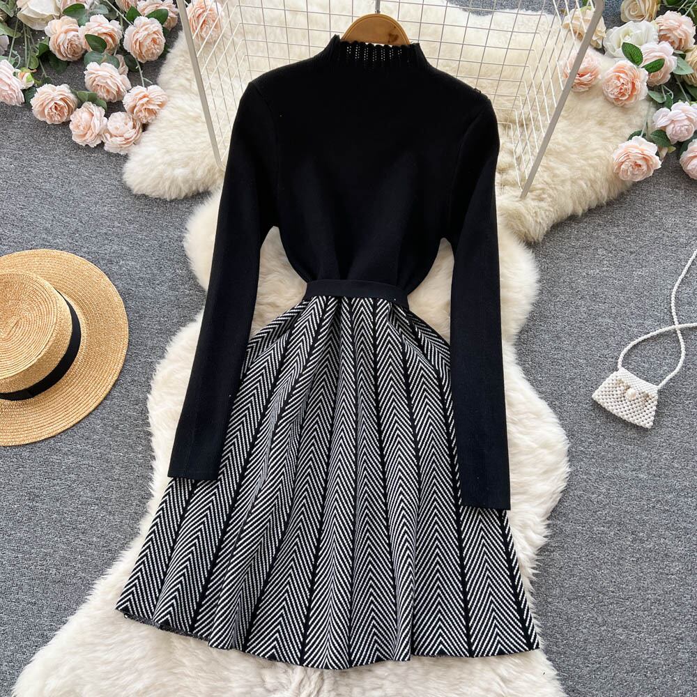 ステッチセータースカート女性の 2022 秋と冬の新しい内層気質ストラッププリーツニットドレス オータム 秋物 ウィンター 冬物 lyxaj27479207057