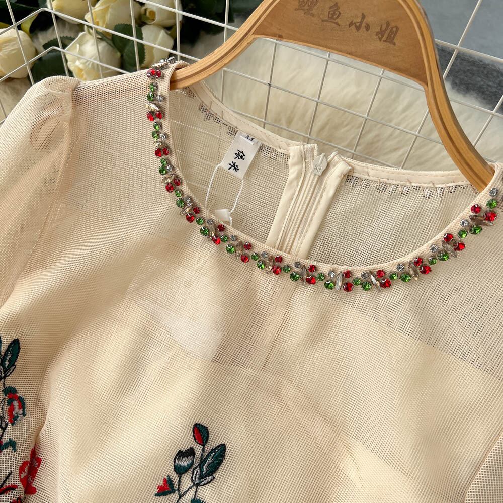 重工業刺繍メッシュビーズ長袖ドレス女性の秋の新しい高級感セレブ風の妖精のドレスロングスカート オータム 秋物 lyxaj50520195296