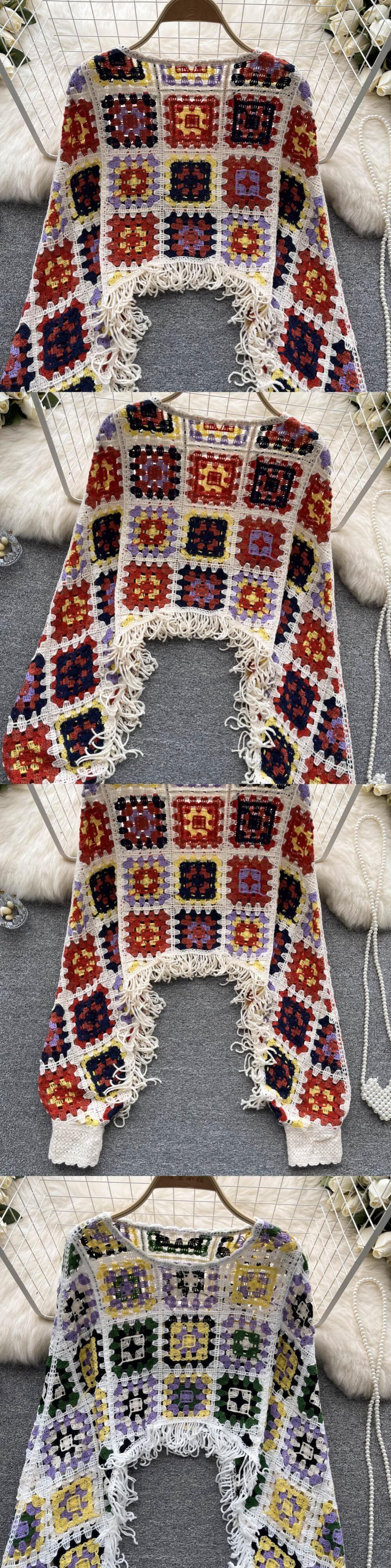 秋と冬の新しいレトロなコントラスト カラー中空ショート tel 長袖ニット セーター女性のファッショナブルな気質スリム シックなトップ ロング オータム 秋物 ウィンター 冬物 lyxaj49656567826