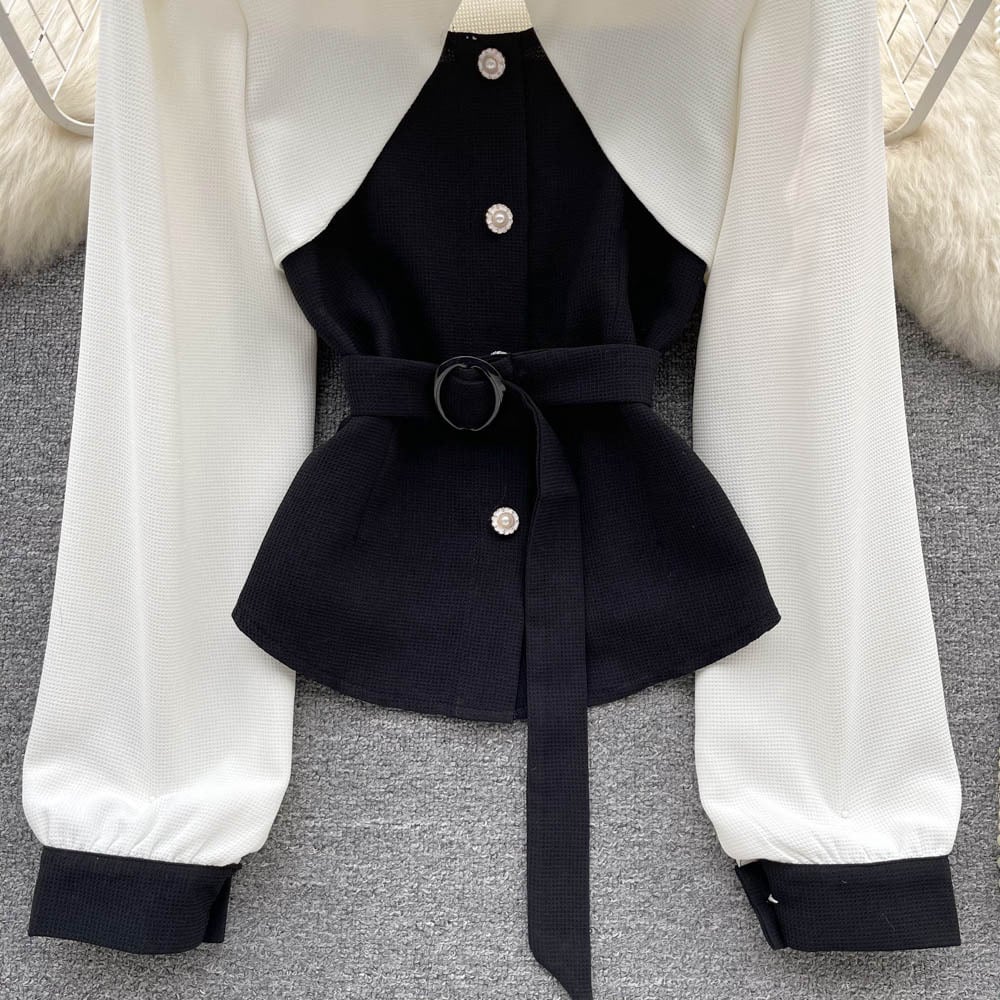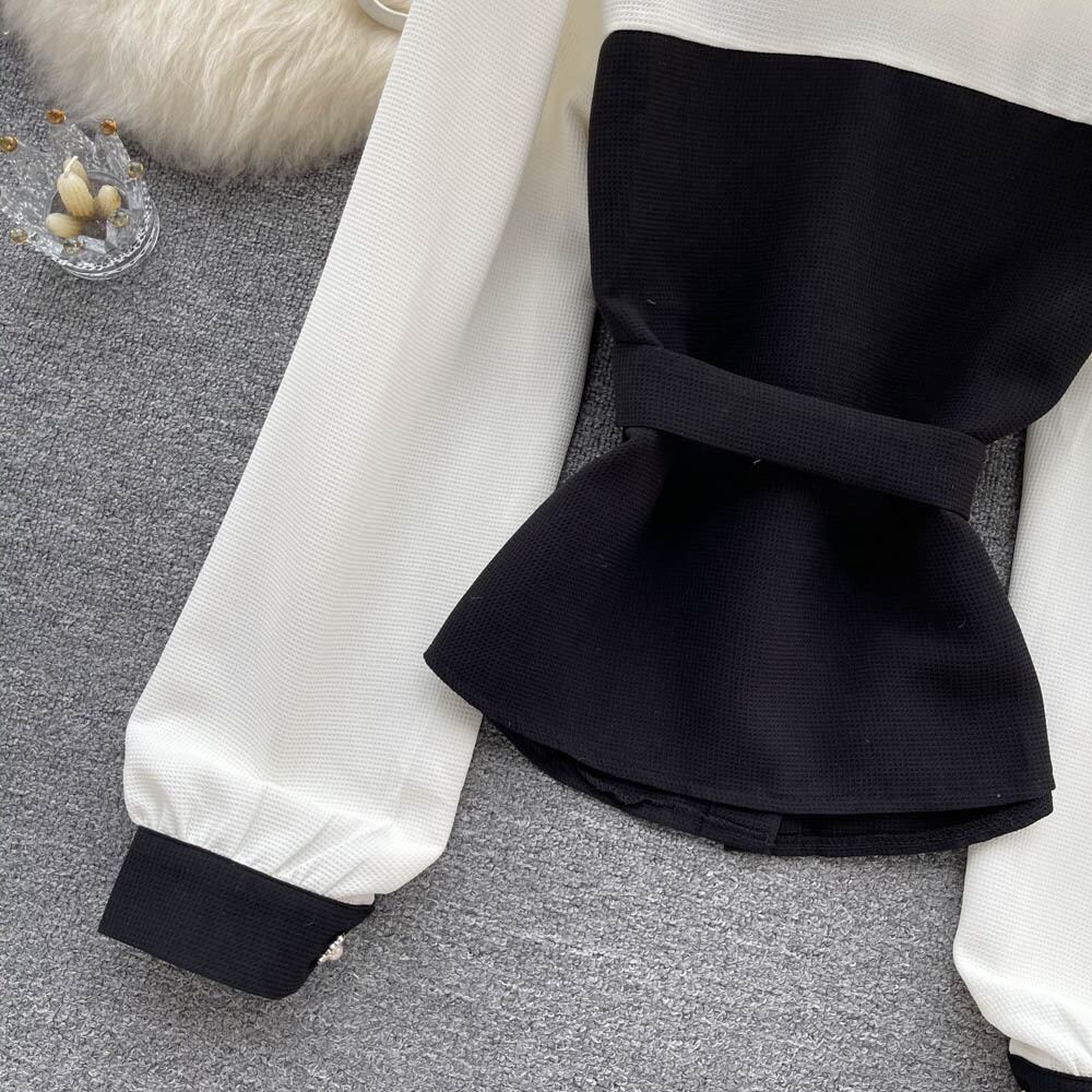 フランスの有名人の気質ニッチなデザインセンスカラーコントラストフェイクツーピース長袖シャツジャケット秋の女性のシックな小さなシャツ ロング オータム 秋物 lyxaj47451071783