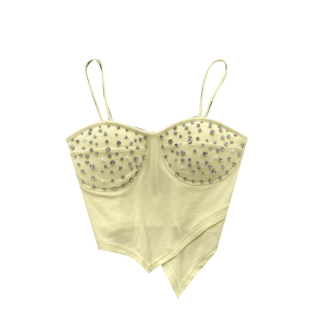暑い小群衆デザイン感覚ビーズベルトチェストパッドキャミソール女性の夏の純粋な欲望風不規則な美しい底入れトップ サマー 夏物 ハーネス ピュア lyxaj17482922470