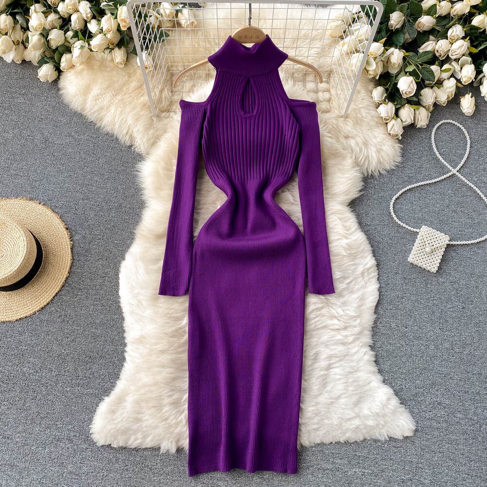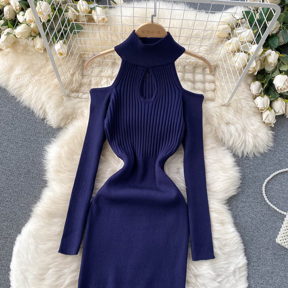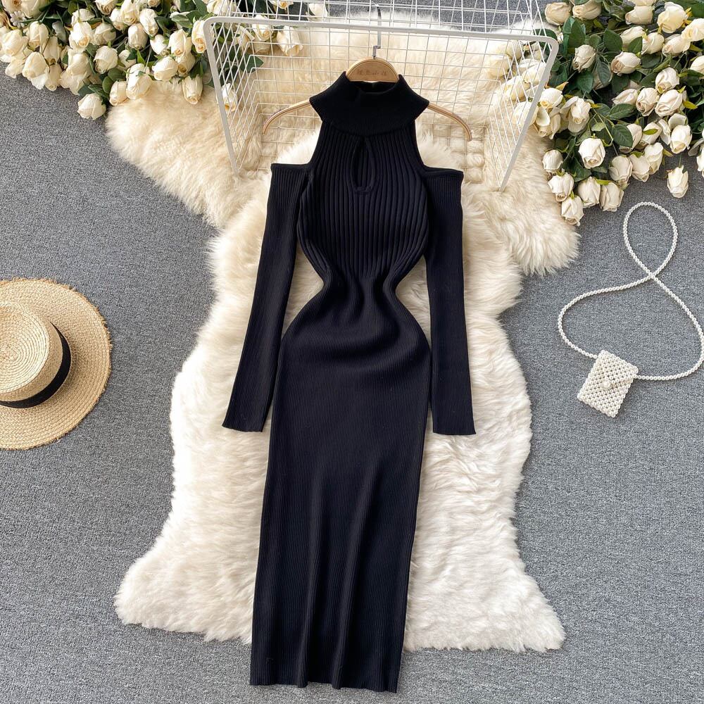 香港スタイルのレトロフレンチセクシーなオフショルダードレス女性らしさウエストイブニングドレスタイトフィットヒップニットショートスカート lyxaj79971684263