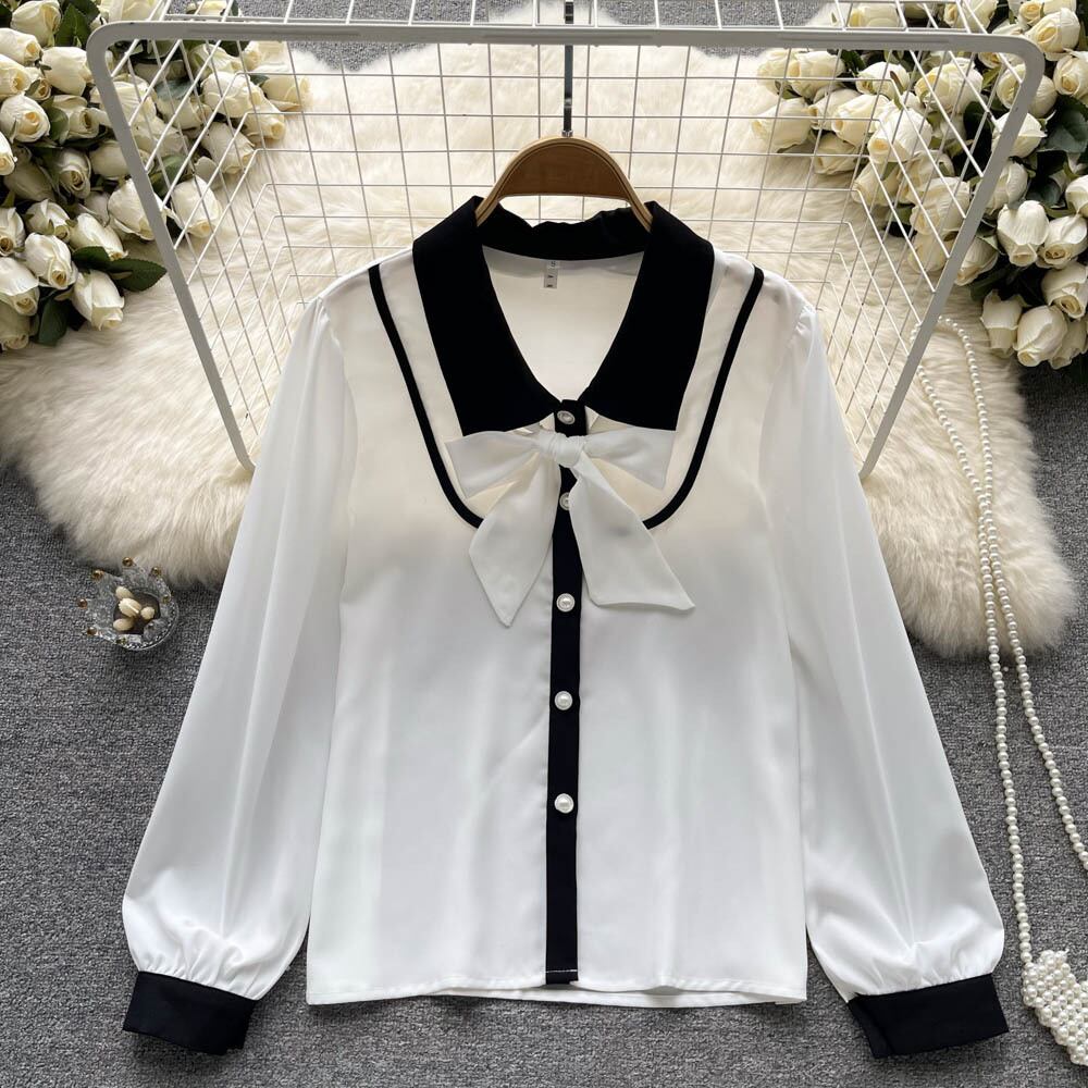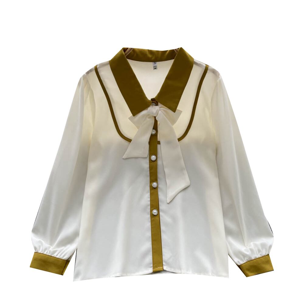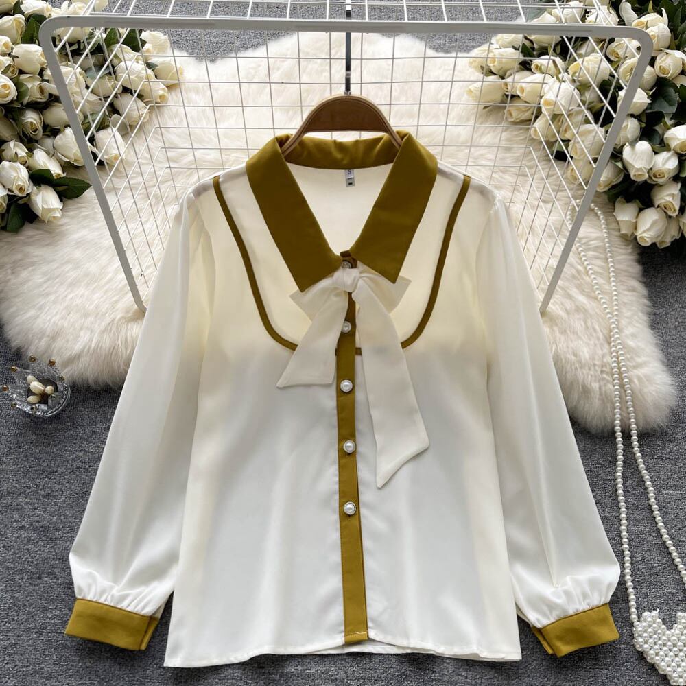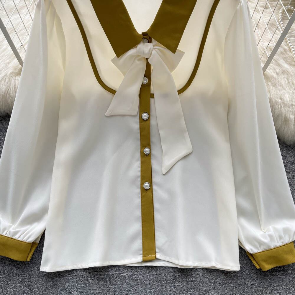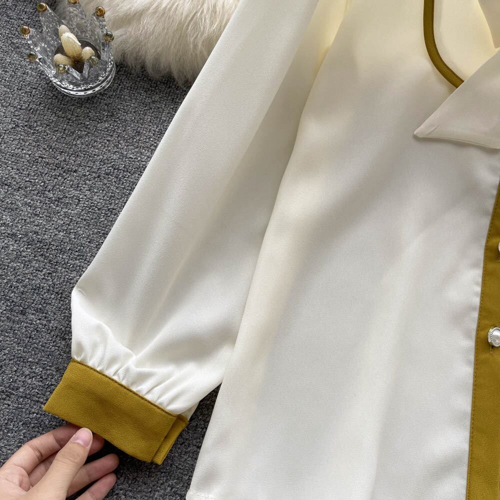 -エンド ニッチなデザイン 対照的な色の気質 長袖シャツ ジャケット 秋の女性のフレンチ ルーズで薄いウエスタン スタイルのシャツ ロング オータム 秋物 lyxaj16676869854