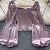 有名人気質デザインセンスニッチランタンスリーブシャツ秋の女性のレースエッジウエストショートシャツショートトップ潮 オータム 秋物 lyxaj13657752611